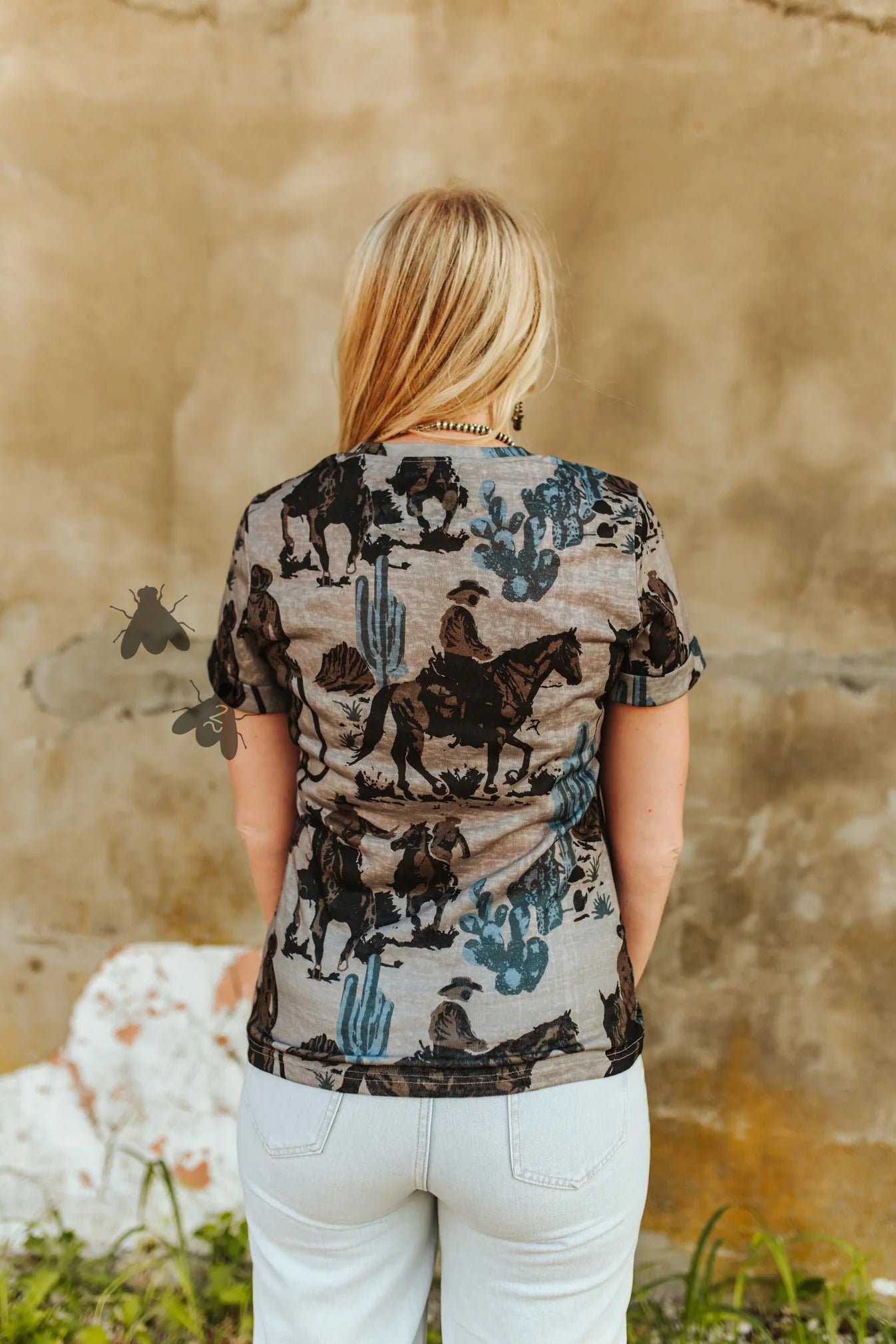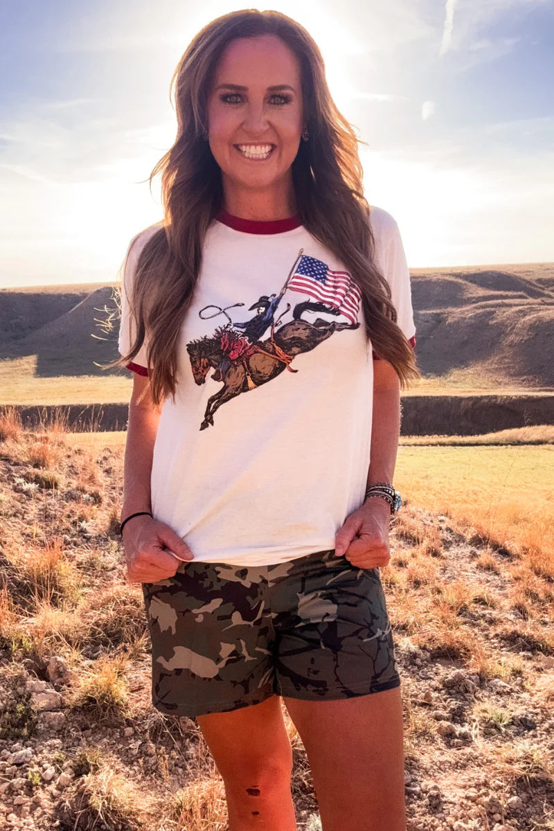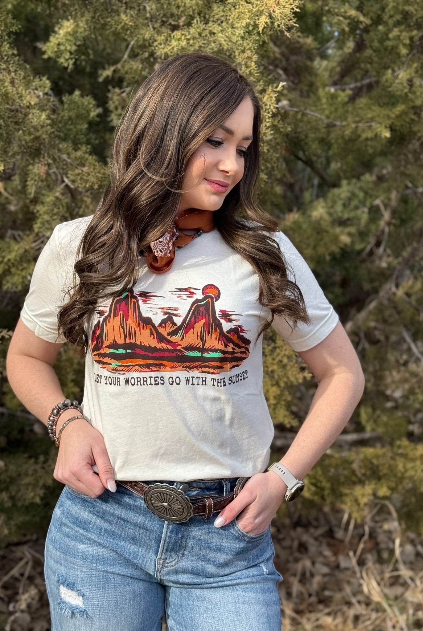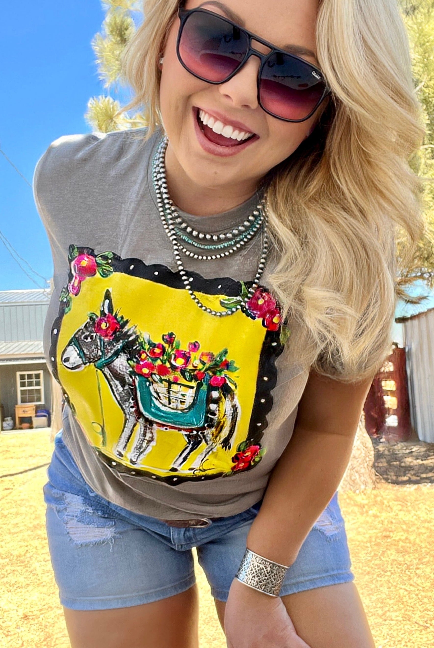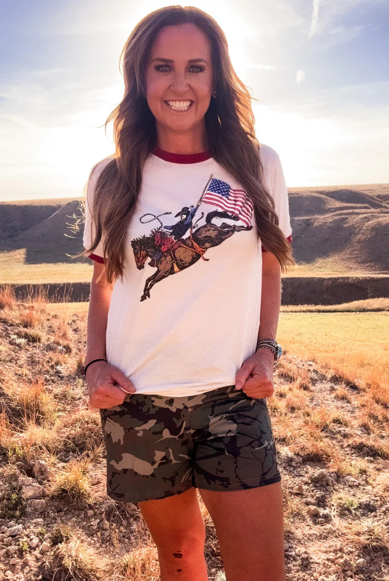 Our Just a Small Town Girl graphic tee features a beautiful Western-inspired design with a cowgirl silhouette, fluttering butterflies, and rustic details that capture that laid-back country spirit.