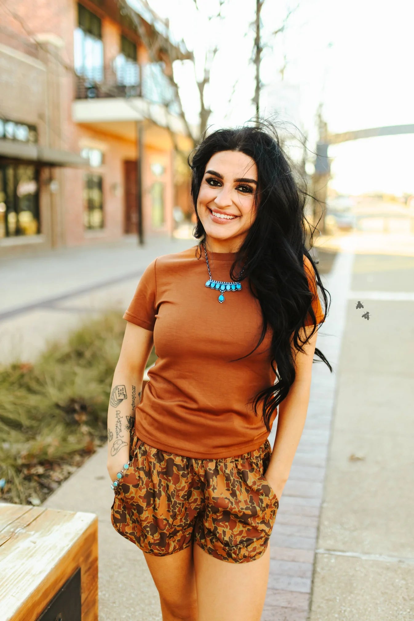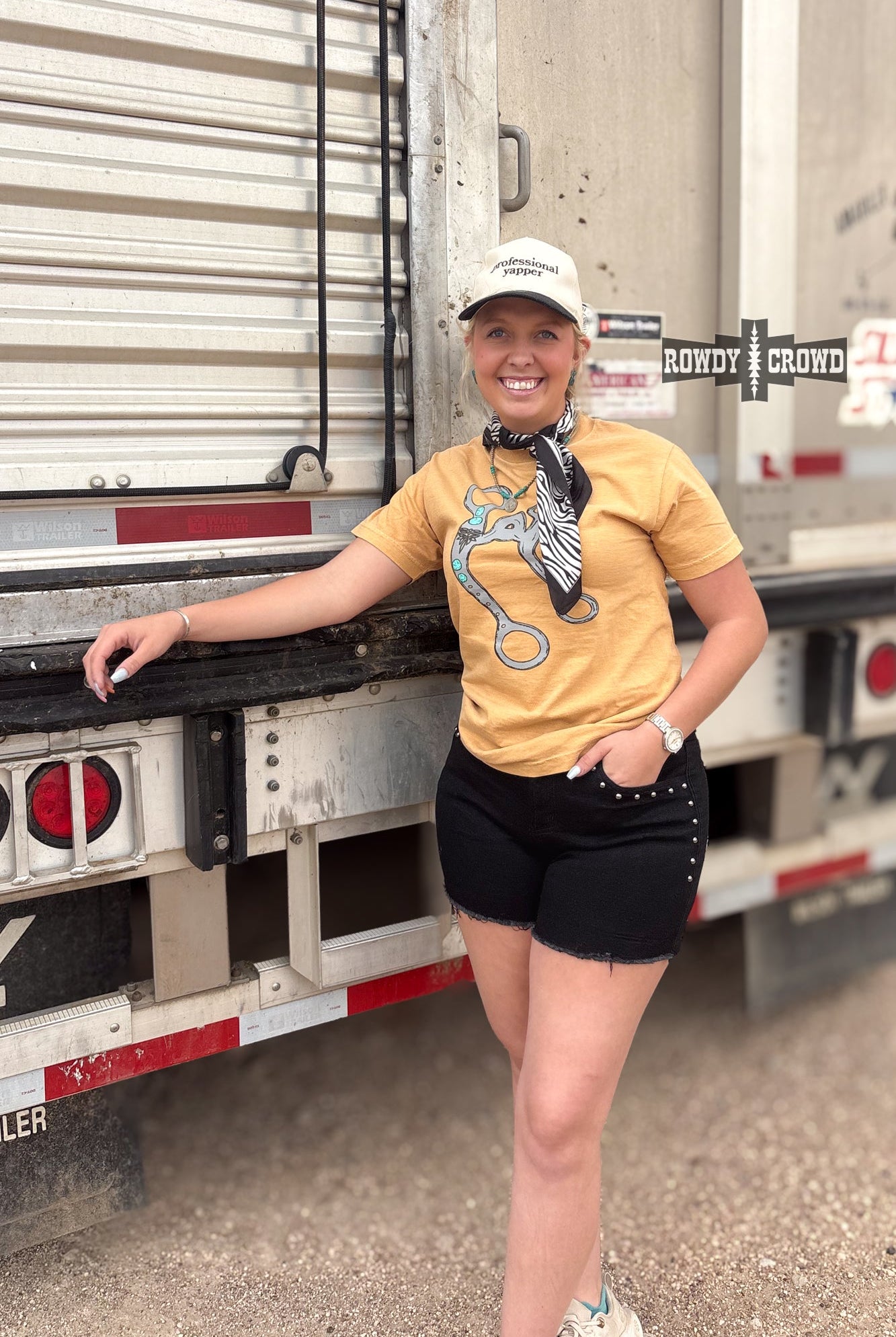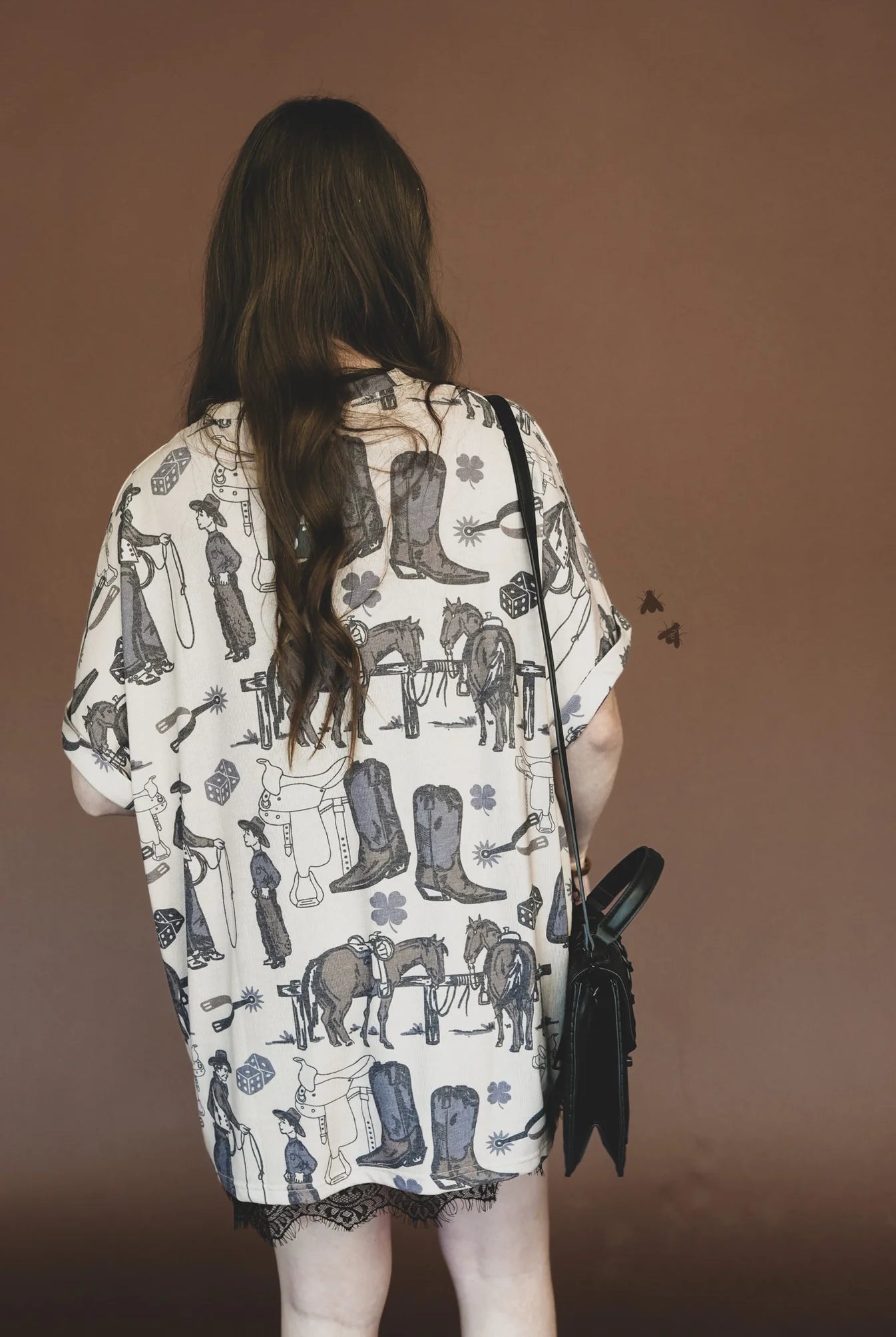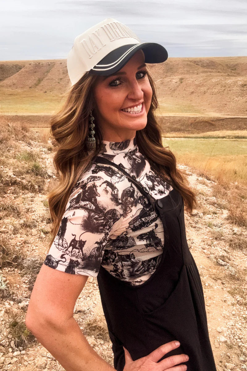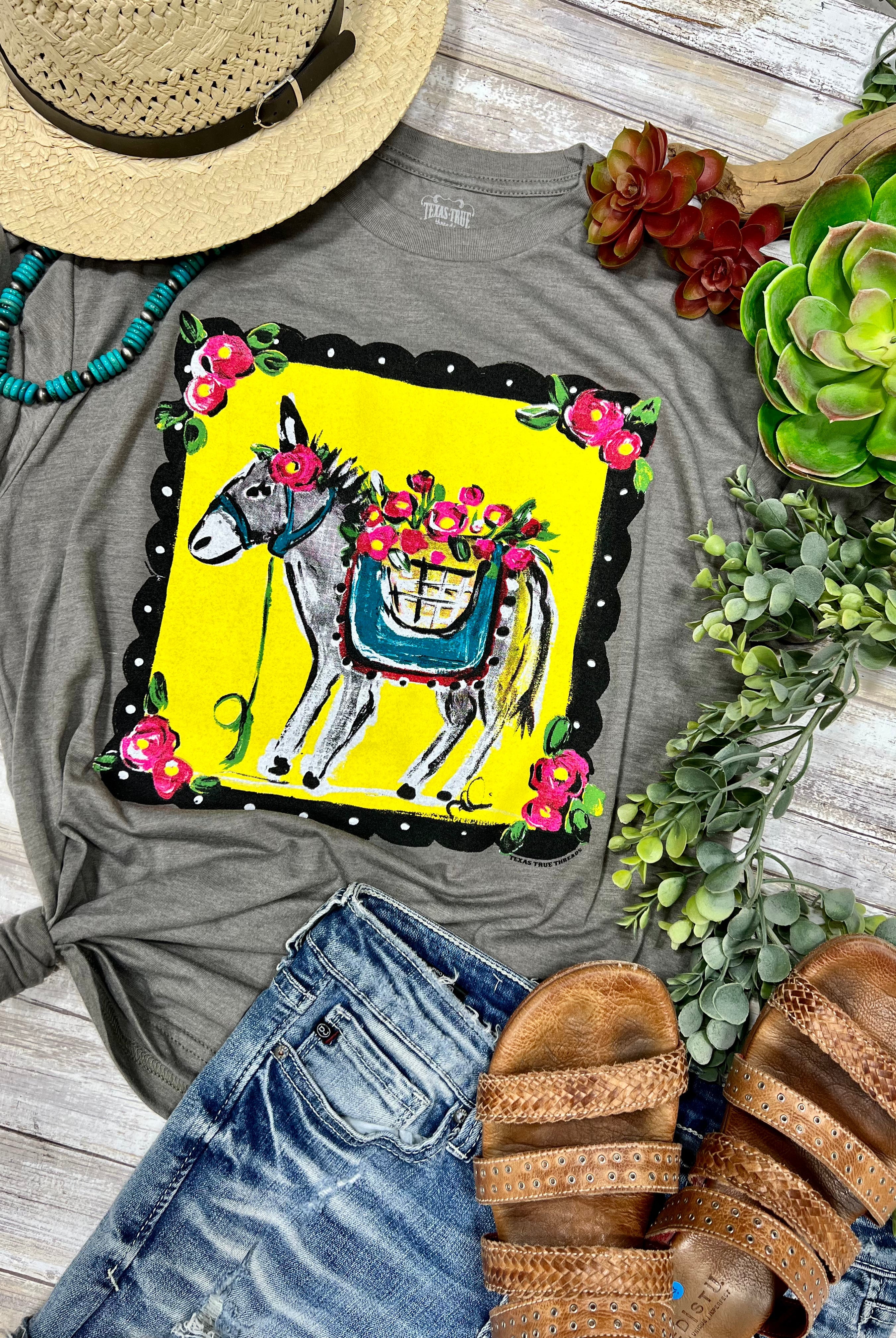 Our Just a Small Town Girl graphic tee features a beautiful Western-inspired design with a cowgirl silhouette, fluttering butterflies, and rustic details that capture that laid-back country spirit.