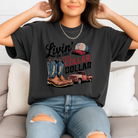 Embrace a refined western style with this graphic tee featuring the phrase "Living on that Blue Collar Dollar" alongside a classic boot design. Available in multiple colors, this shirt combines casual comfort with a subtle nod to hardworking values, making it a versatile addition to your wardrobe. Perfect for those who appreciate understated elegance with a touch of rugged charm.