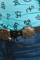 Elevate your accessory lineup with this premium Brown Croc Embossed Cross Studded Square Concho Belt. Featuring bold antiqued conchos embossed with cross and stud designs, this belt offers rugged elegance and contemporary Western flair. Made from genuine leather with an adjustable fit, it's a statement piece perfect for cowgirl fashion influencers and cowgirls alike.