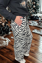Step into wild style with our Cowgirl Safari Pants, featuring a bold black and white zebra print on soft, stretchy jogger fabric. These wide-leg pants combine comfort with a fierce look, perfect for strutting your unique vibe while staying cozy all day long. Whether you’re hitting the town or lounging at home, these pants bring playful flair to your everyday wardrobe. Jogger material, NEW STYLE!