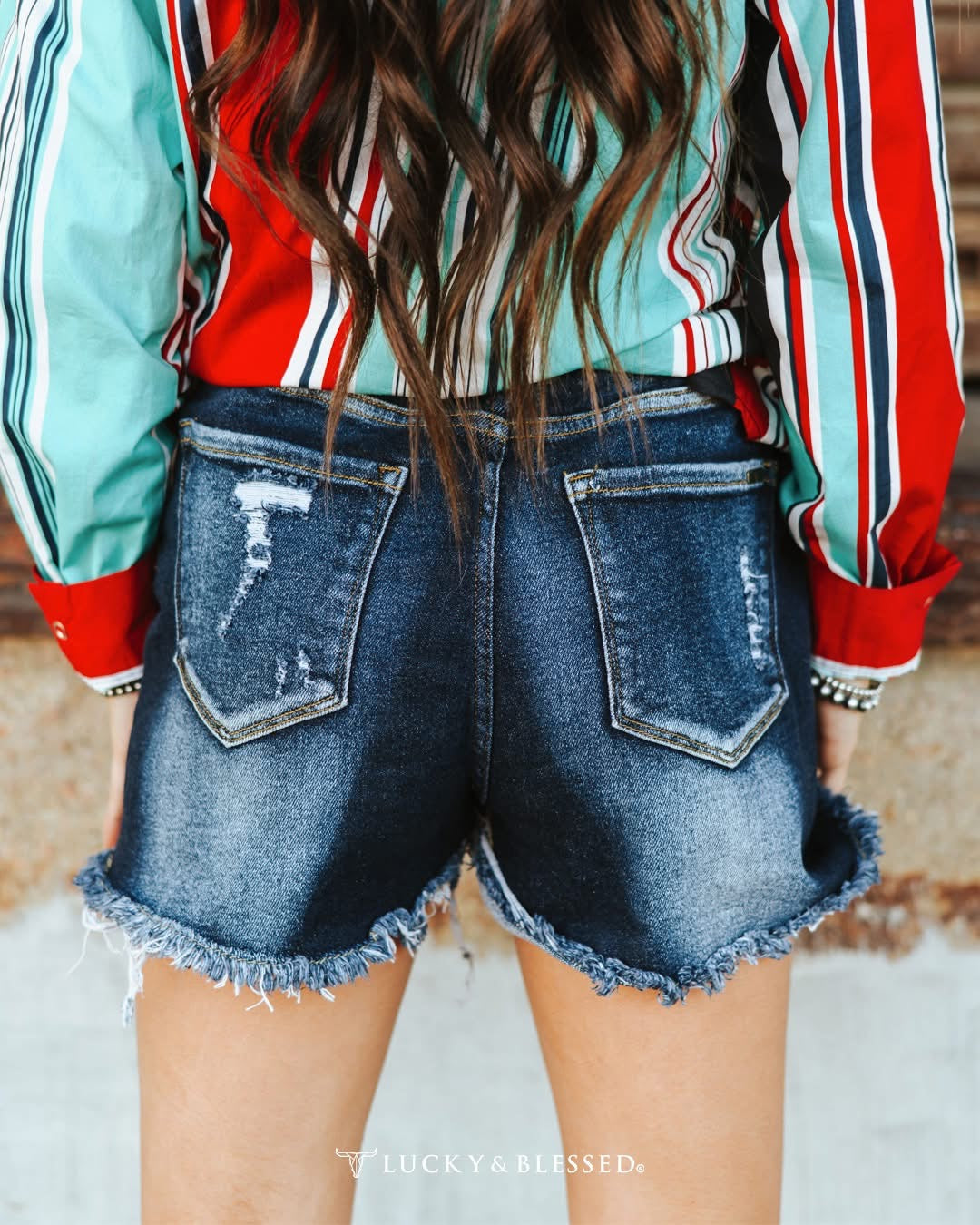 Experience ultimate comfort and style with our Dark Wash Distressed Tummy Control Shorts. Featuring a unique tummy control design, these shorts not only provide a flattering fit but also a slimming effect. The distressed details add an edgy touch, making these shorts a must-have for any fashion-forward wardrobe.