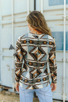 Embrace effortless style with this comfortable Long sleeve featuring a beloved Aztec pattern in a refined blend of neutrals and vibrant hues. Its versatile design pairs seamlessly with jeans and your favorite jewelry, offering an easy yet elegant look perfect for any occasion.