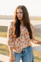 The Fall Flowers Top features a charming floral pattern on a soft cream base, making it an ideal everyday piece. With its 3/4 sleeves, this top offers the perfect balance for transitioning into cooler fall days, combining comfort and style effortlessly. Embrace the season with a versatile top designed to keep you looking fresh and feeling comfortable throughout your day.