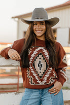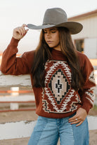 Stay cozy this season with the Fall Nights Sweater, crafted from high-quality knit for lasting warmth. Its rich rust hue accented with cream, taupe, and black highlights a timeless southwest pattern on both the front and sleeves. Designed to fit true to size, this sweater combines classic style with comfort, making it perfect for chilly autumn evenings. Embrace the season in a piece that feels as good as it looks.