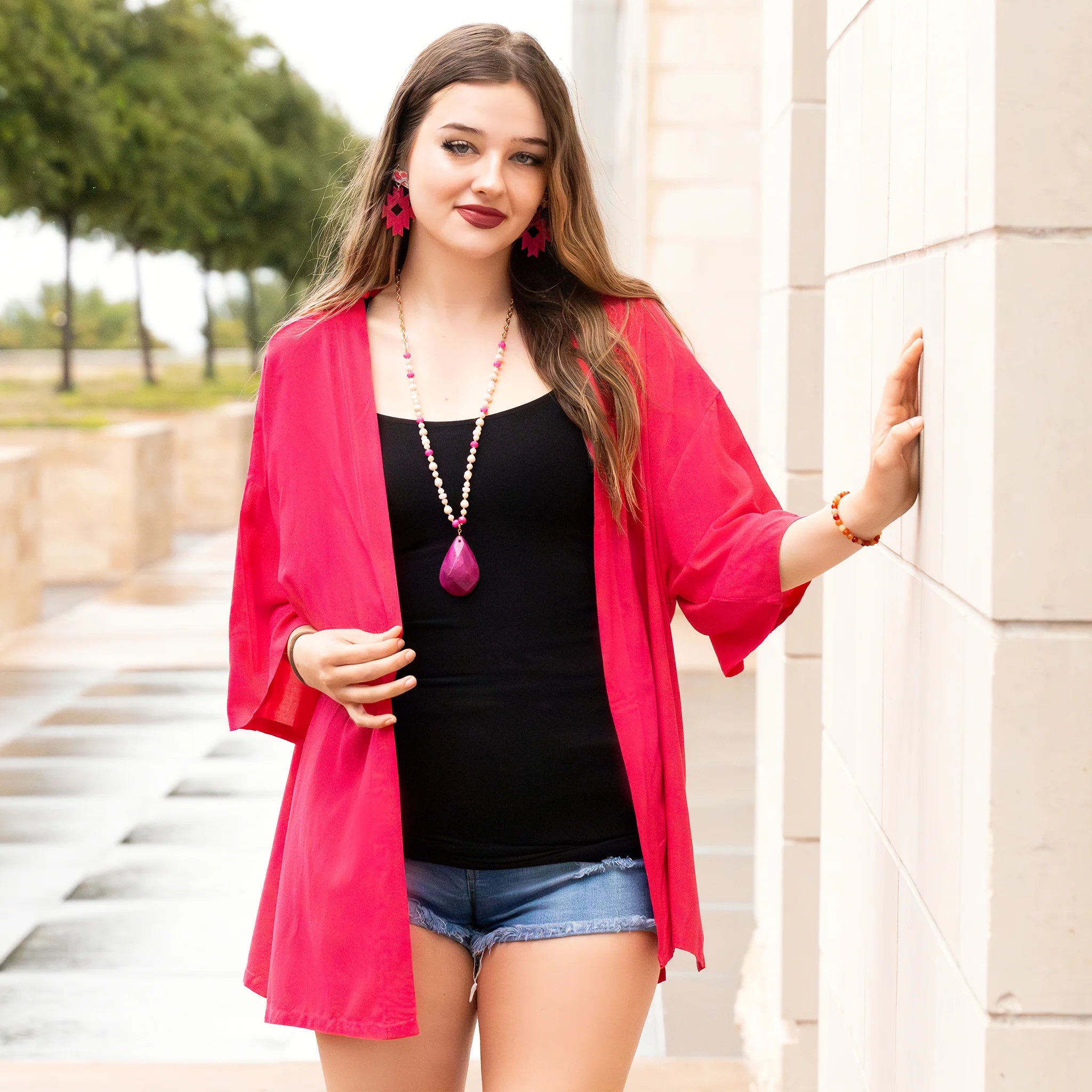 Wrap yourself in vibrant style with our Fuchsia Cardigan. This solid cardigan is the perfect layering piece to add a pop of color to your outfit. Wear it over a camisole for a chic and effortless look. Elevate your wardrobe with this versatile and eye-catching piece.