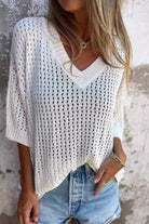 Full Size Openwork V-Neck Knit Cover Up Plus Size