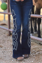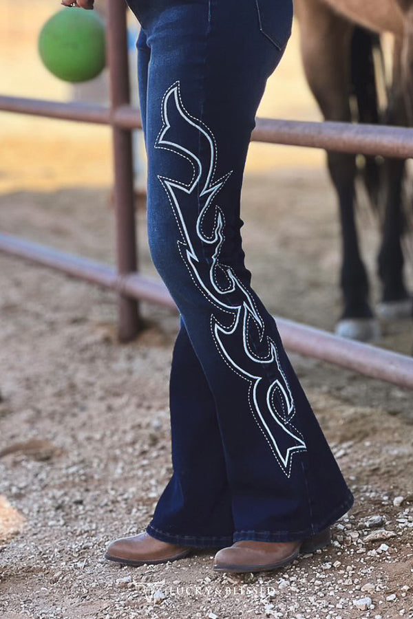 Elevate your denim collection with these meticulously crafted full-length flare jeans. The distinguished boot stitch embroidery adorns the sides, complementing the classic five-pocket design. Experience exceptional comfort with the adjustable elastic waistband that eliminates unwanted gaps. The thoughtfully designed curved back yoke accentuates your silhouette, while the premium stretchy fabric ensures sophisticated style never compromises on comfort.