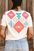 L&B Ivory Coral Turquoise Aztec Printed Short Sleeve Top