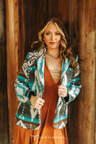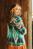 Elevate your wardrobe with this Turquoise Blue Aztec Button Down Blazer. Its vibrant turquoise shade pairs beautifully with the intricate Aztec pattern, offering a refined yet bold statement. Designed with a classic button-down front, it effortlessly balances structure and style, making it perfect for both professional settings and chic social occasions. This blazer brings a sophisticated edge to any outfit while keeping you comfortably confident throughout your day.