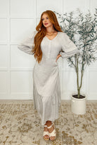 Get ready to turn heads with our Maple Dress Greige Vineyard! This lightweight woven dress features a v-neckline and unique front half zip closure for a touch of flair. The gathered shoulder and balloon sleeve add a feminine touch, while the functional waist tie and side pockets provide both style and convenience. Don't miss out on the tiered hem for an extra playful touch.