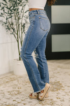 Step into style with the Maureen High Rise Distressed Bootcut Jeans! Featuring a trendy zip fly, edgy distressed details, and a fun frayed hem, these jeans bring a playful twist to your wardrobe. The flattering high rise and bootcut silhouette create a perfect fit that moves with you, making every step a confident statement. Perfect for mixing and matching with your favorite tops and shoes!