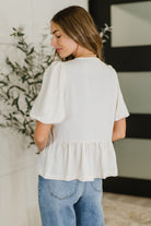 Brighten your wardrobe with this playful ivory Balloon Sleeve Blouse. Crafted from crisp poplin woven fabric, it features a flattering V-neckline with a functional neck tie for a touch of charm. Gathered shoulders and tiered details add volume and movement, while cased elastic sleeve cuffs and delicate bow accents complete the whimsical look. Perfect for adding a fun, feminine flair to any outfit.