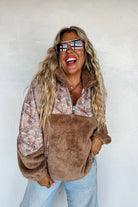 Our cute new SHERPA CAMO PANELED  pullover offers a perfect blend of comfort and practicality. Features a half zip mock neck, kangaroo front pockets, elastic wrist bands, and side cinch adjustable bands to make the top a semi crop style or leave it un-cinched for a full length look.
