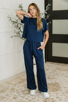 Enjoy laid-back vibes with this playful Casual Top and Bottom Set. Crafted from high-stretch knit, it offers a relaxed fit that moves with you. The banded round neckline and raglan sleeves add sporty charm, while the cased elastic waistband with a functional drawstring ensures comfort and adjustability. Functional side pockets keep essentials close, and the wide-leg silhouette completes the easygoing look perfect for lounging or casual outings.