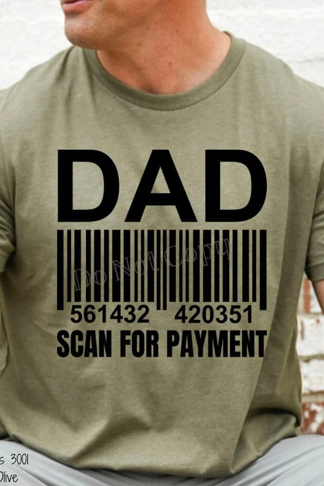 Make payment a breeze with our Dad tee that says "Scan for Payment"! No more fumbling for cash or cards, simply scan and go. Show off your tech-savvy style and easily complete transactions. Convenience and efficiency at your fingertips.