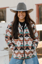 The Southern Roots Jacket combines a stylish shell design with a captivating Aztec pattern in rich, earthy fall tones. Perfect for layering, it offers both comfort and a distinctive look that sets you apart. Elevate your autumn wardrobe with this versatile jacket that effortlessly blends warmth and style.