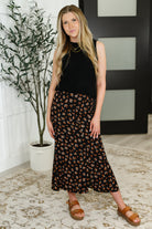 - Crisp Kiss Midi Skirt in Rust, White and Black