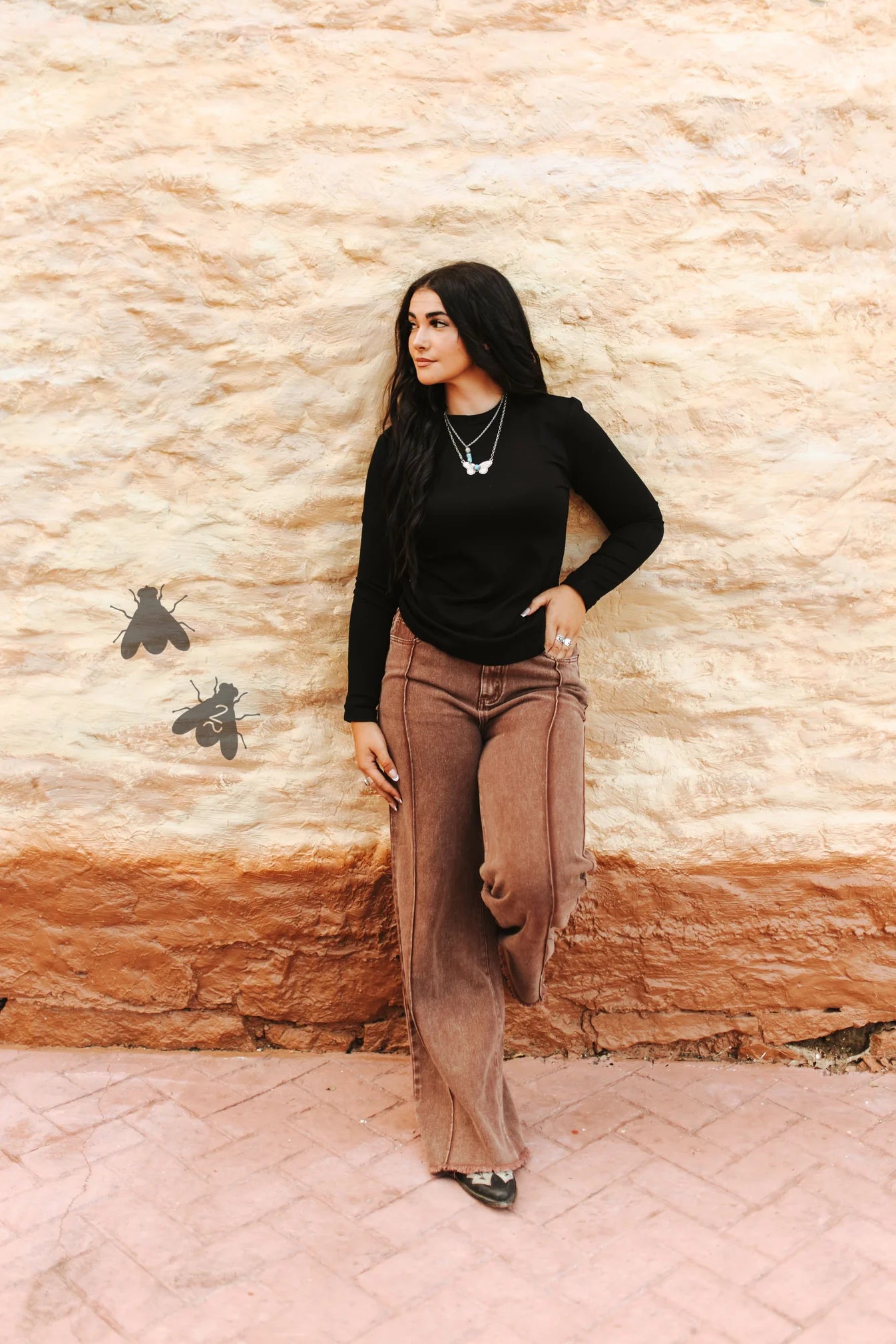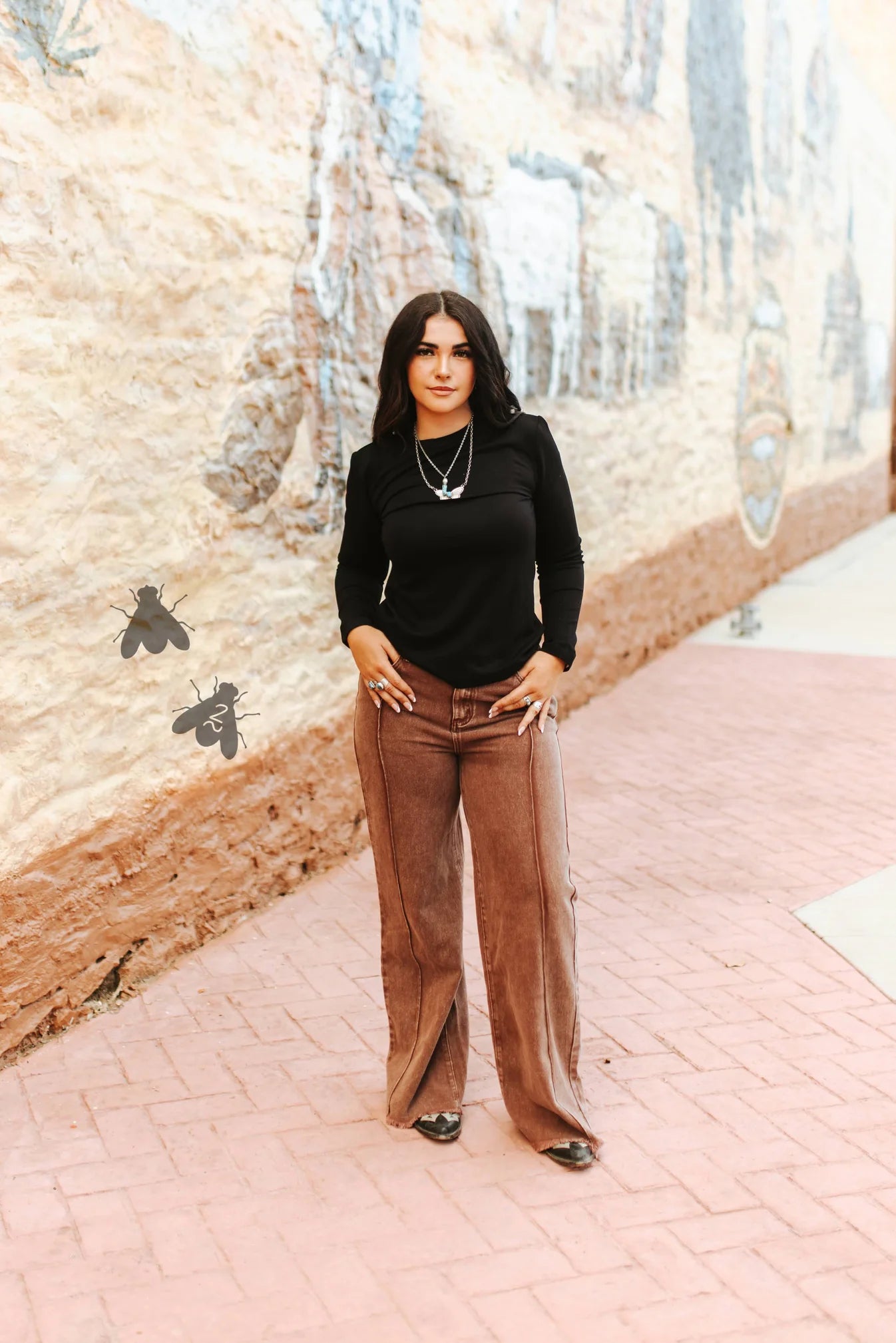 Experience a refined twist on classic denim with the Whistle Britches in Chocolate. These wide-leg jeans offer a sophisticated silhouette crafted from non-stretch denim, featuring a distinctive center seam and a subtly raw hem that adds understated edge. Perfectly blending structure and style, they elevate your wardrobe with a chic, modern appeal.