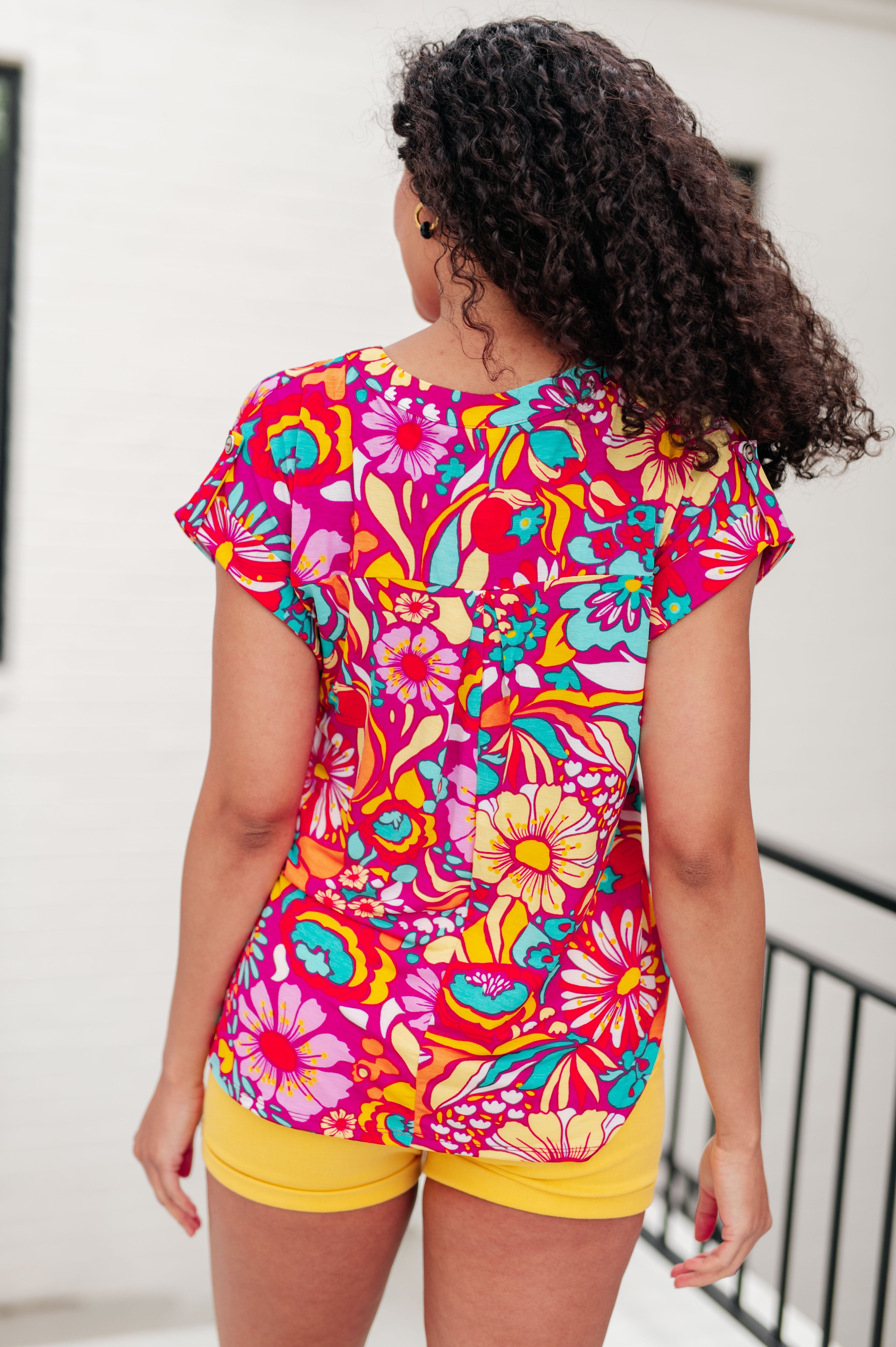 Lizzy Cap Sleeve Top Magenta and Pink Multi Floral