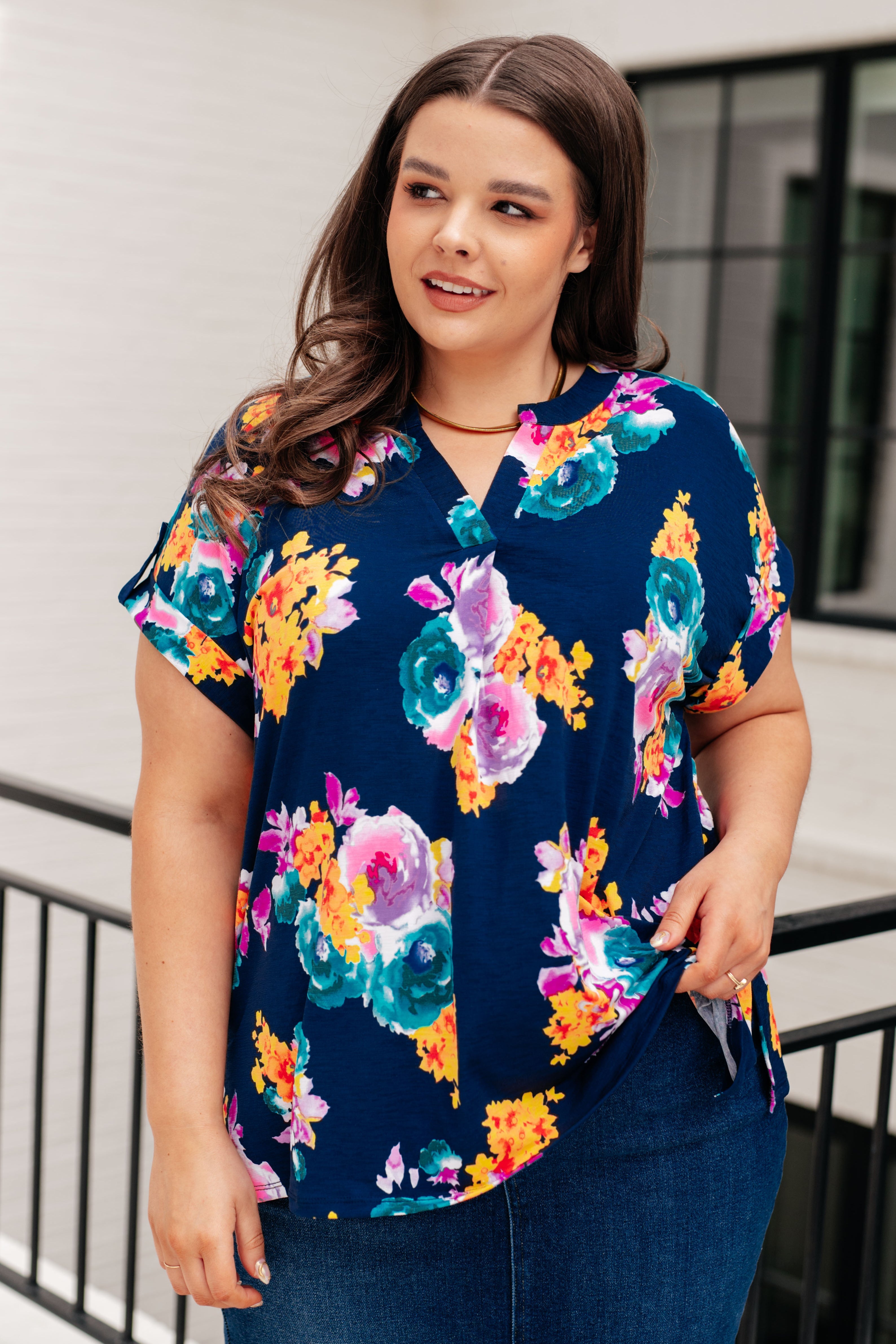 Lizzy Cap Sleeve Top in Coral and Blue Floral