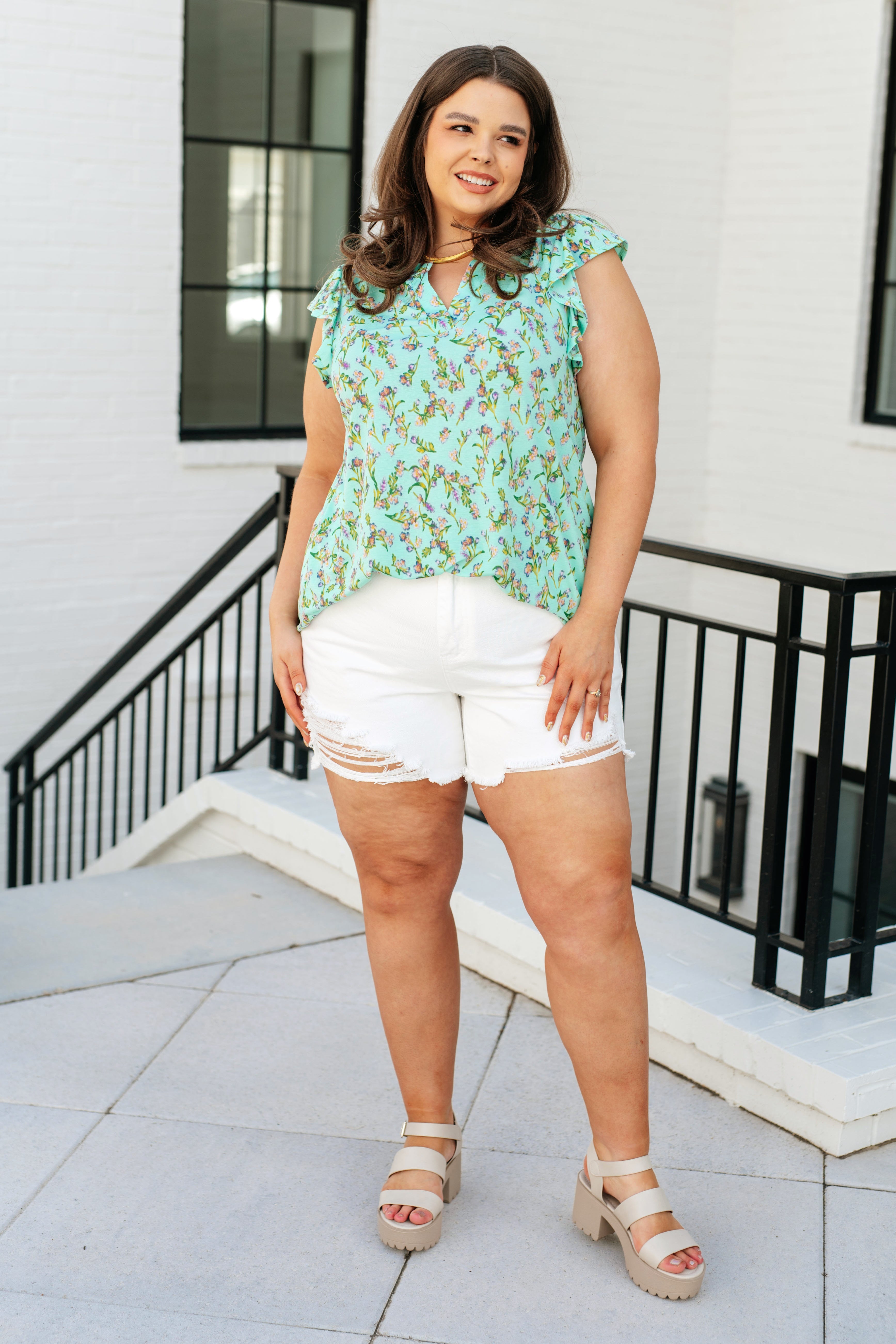 Lizzy Flutter Sleeve Top in Mint and Pink Floral