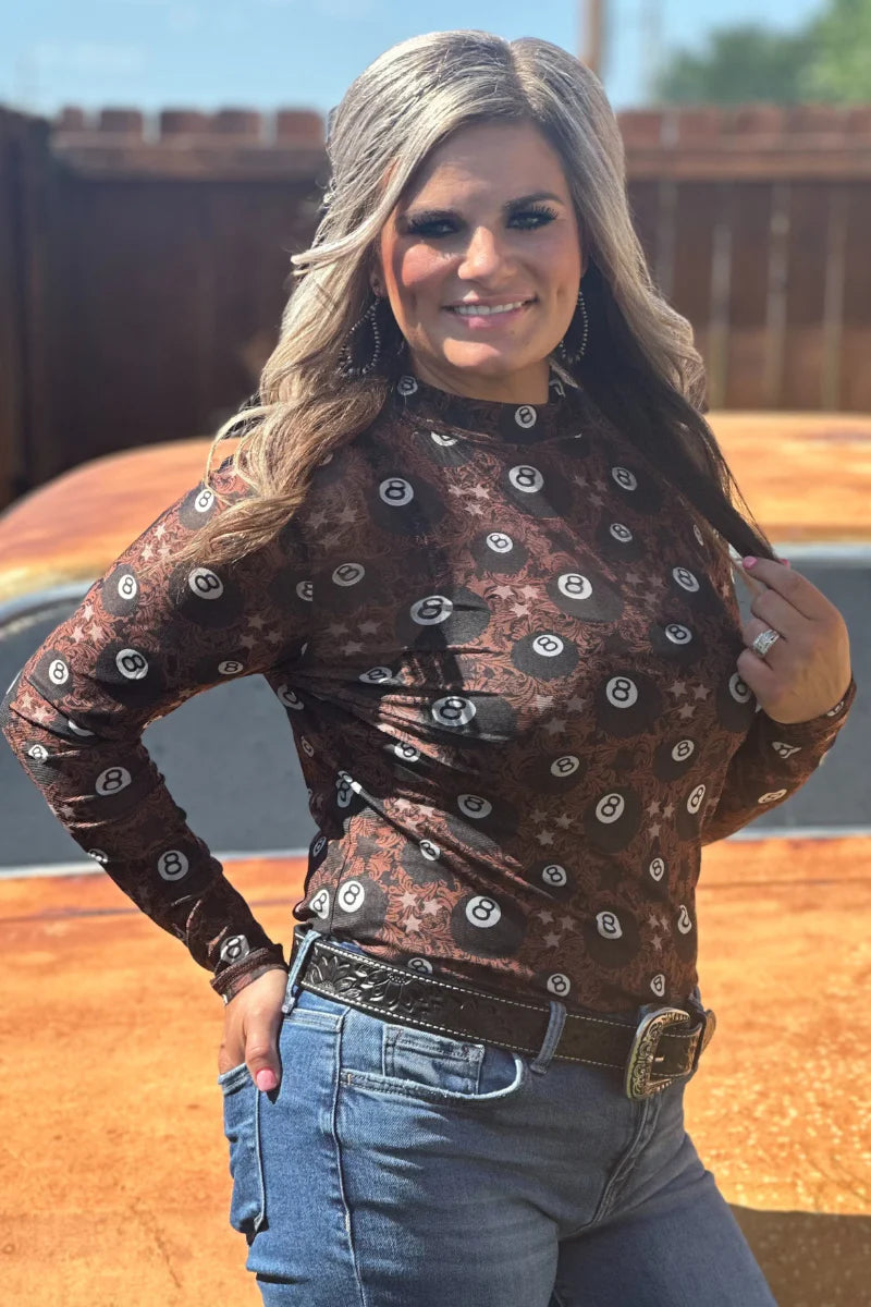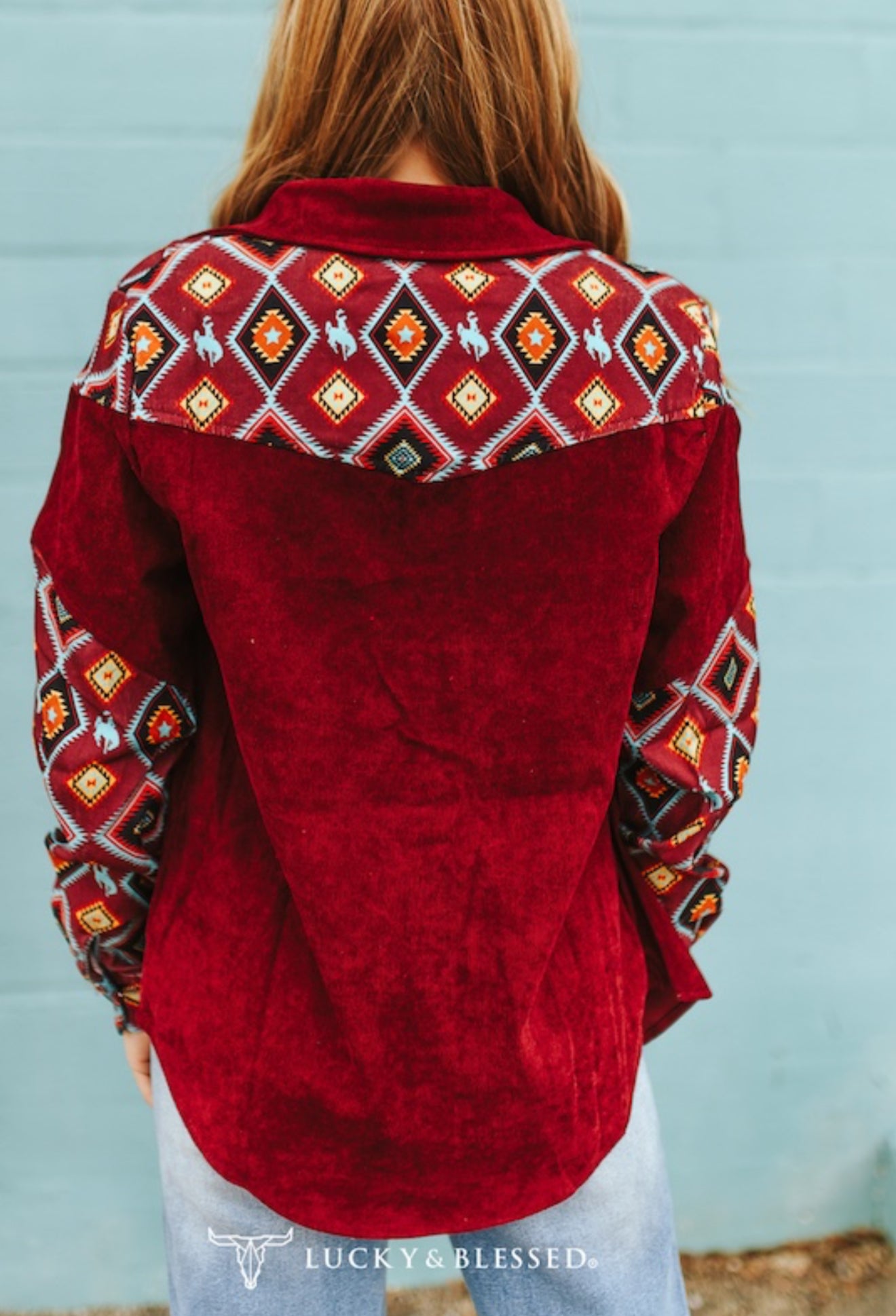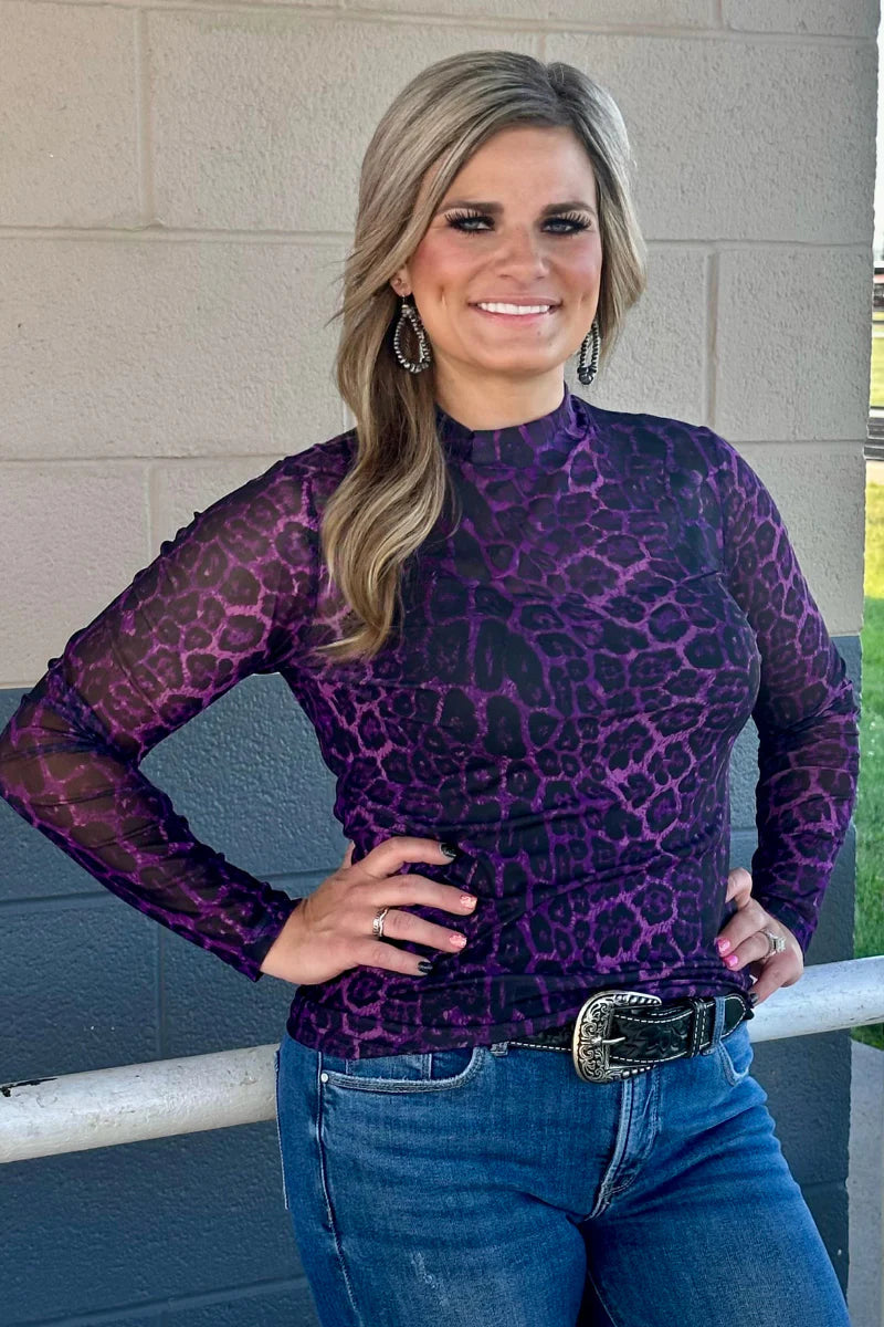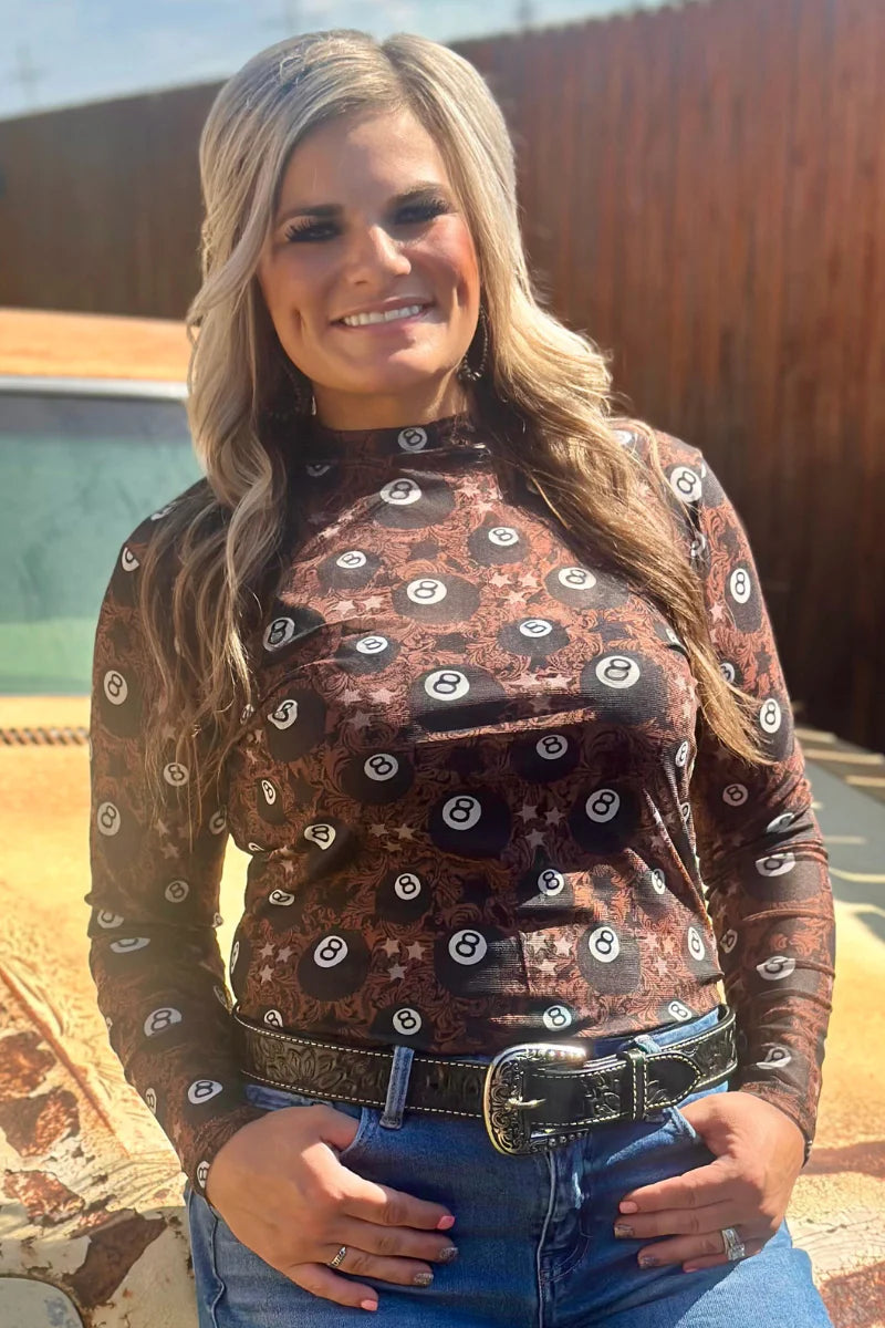 Turquoise Collage Western Printed Long Sleeve Mesh Tops