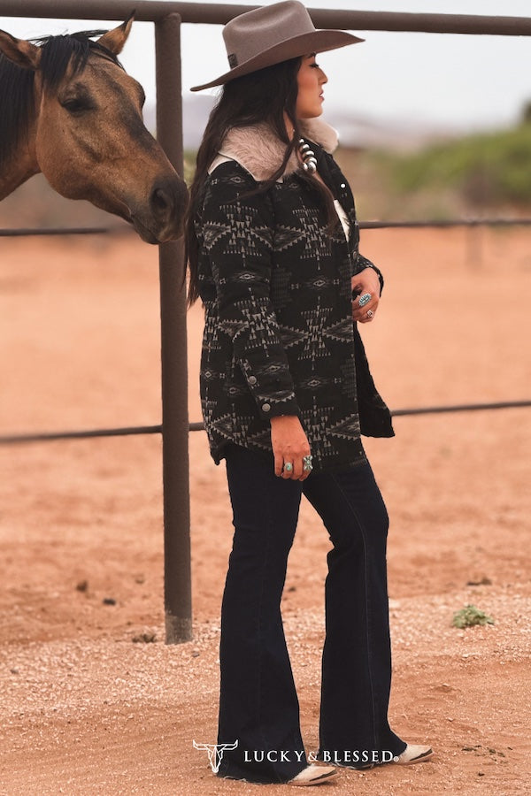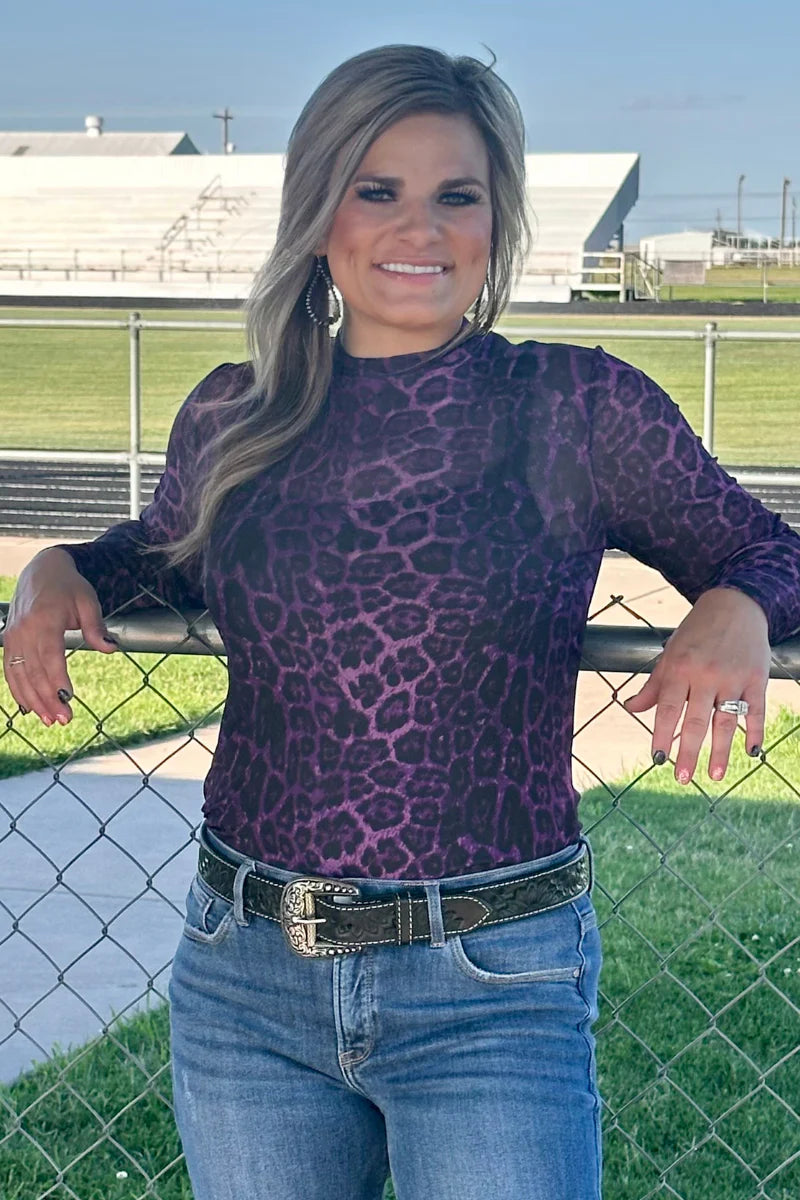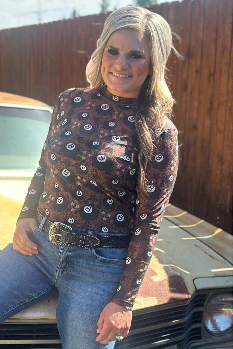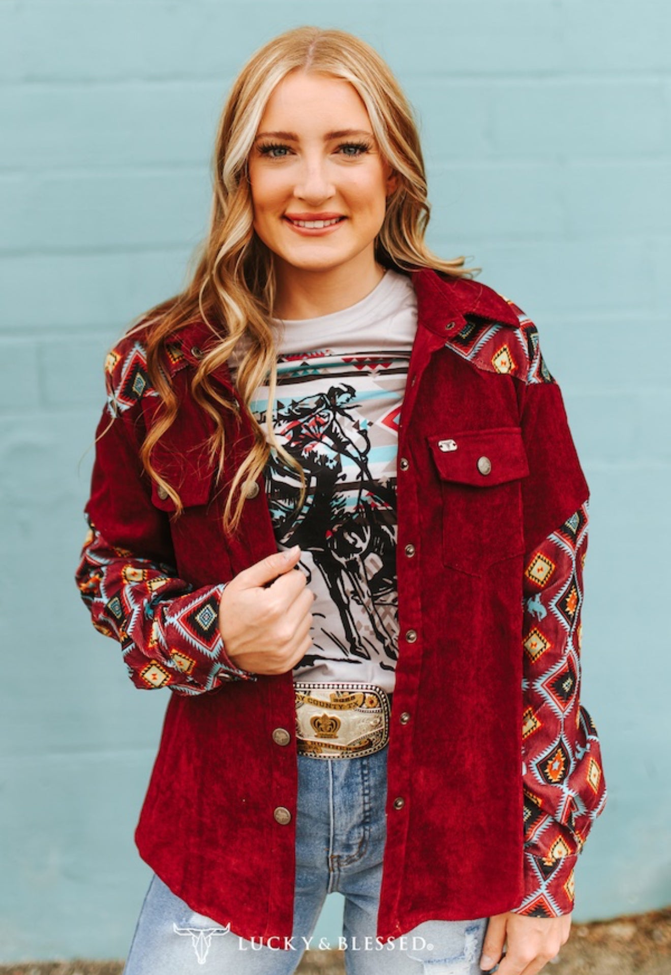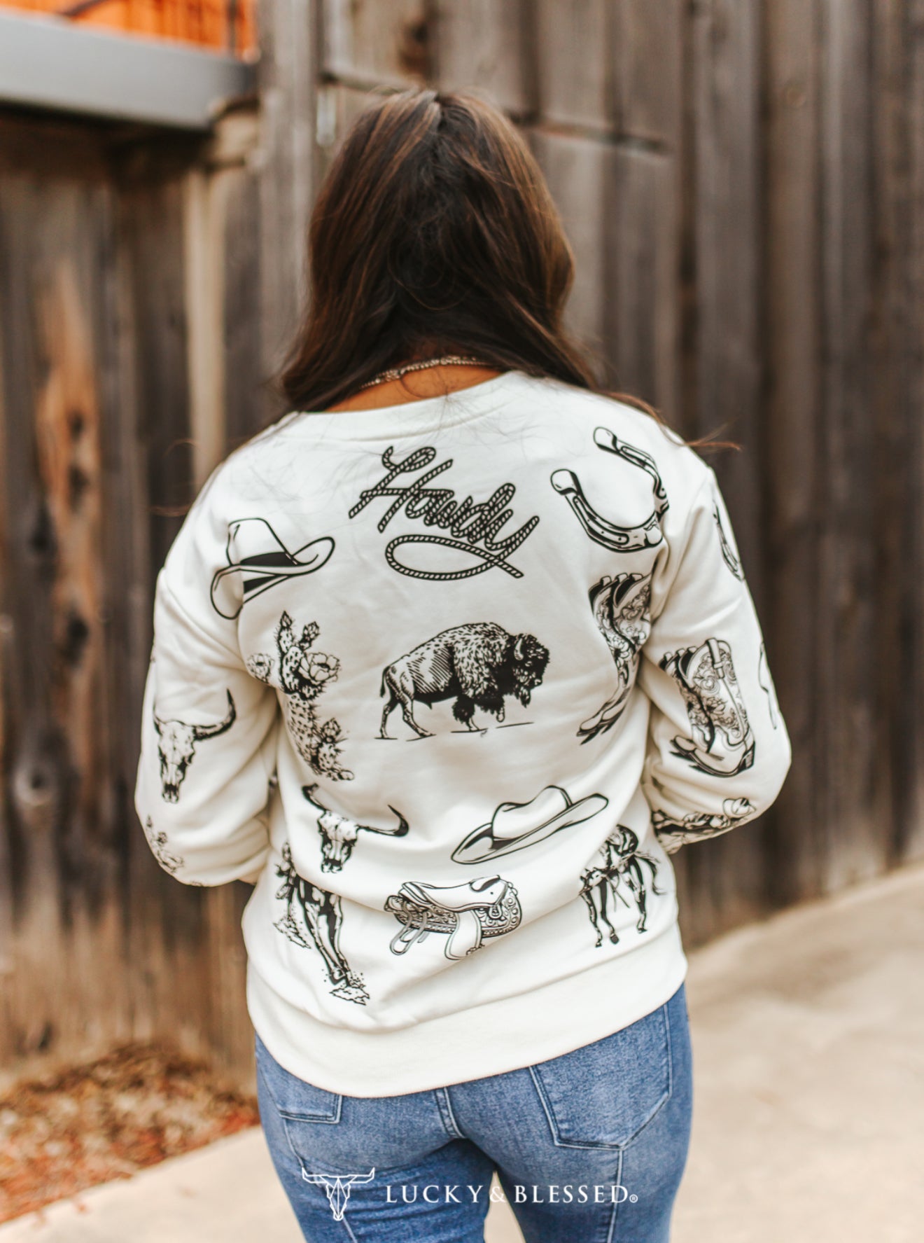 Turquoise Collage Western Printed Long Sleeve Mesh Tops