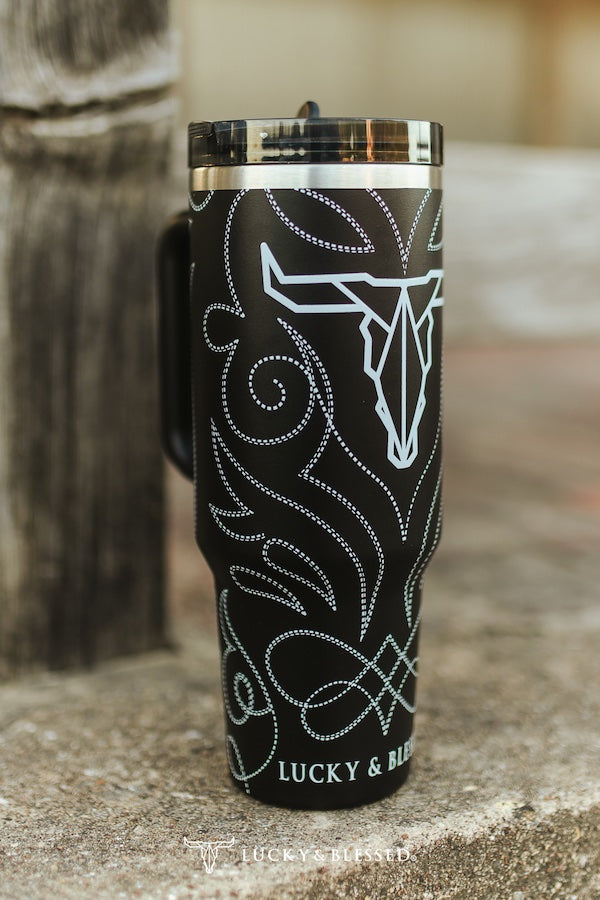 Black Boot-stitch Printed Flip Straw Tumbler (40oz)