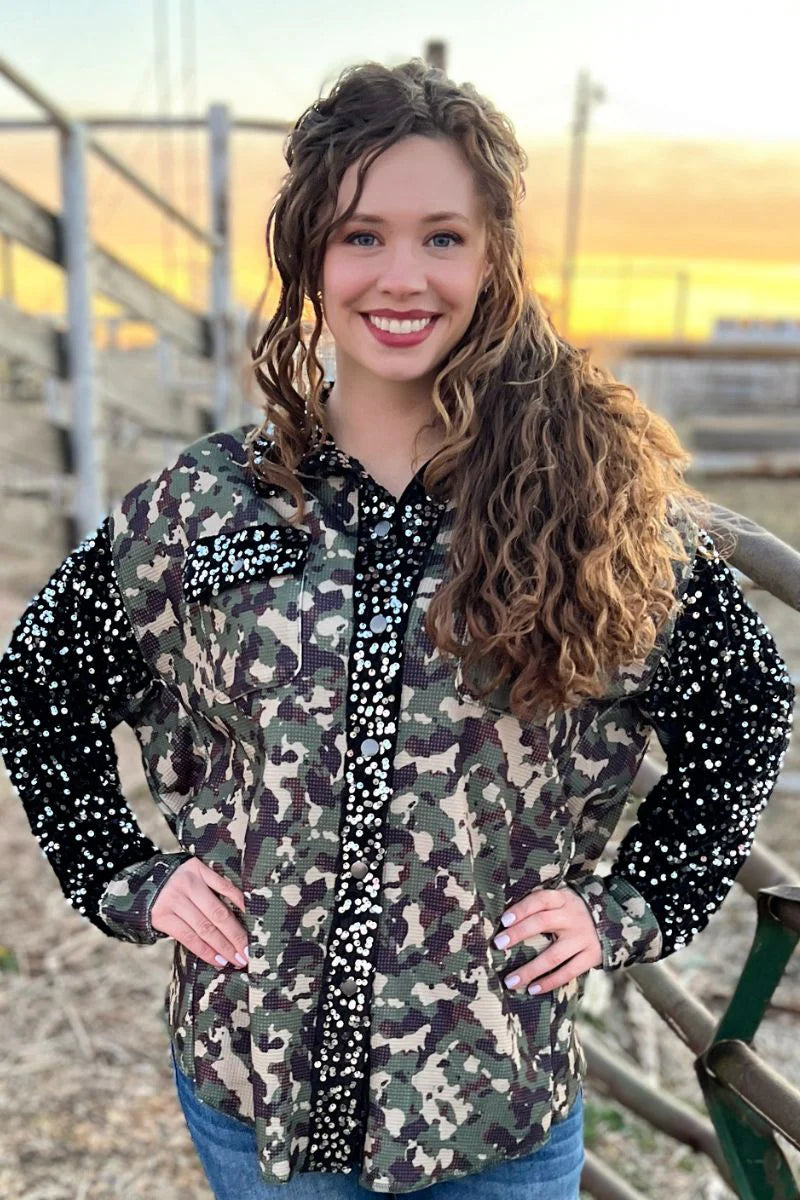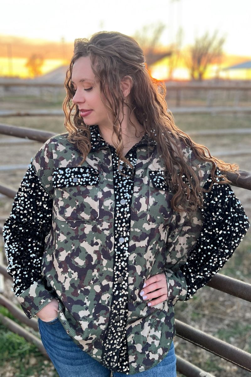 BiBi Waffle Knit Leopard Color Block V-Neck Top