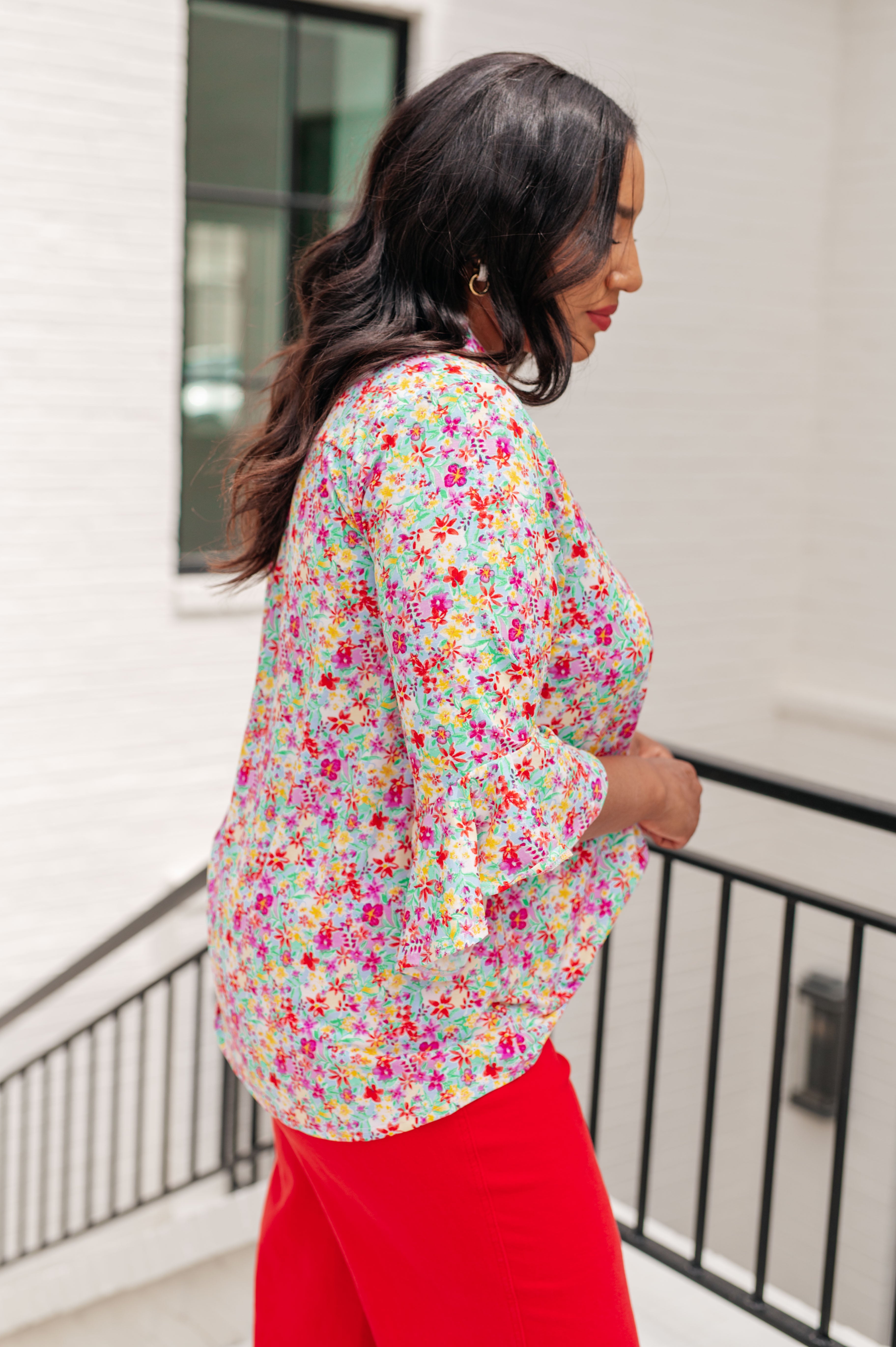 Lizzy Bell Sleeve Top in Lavender Multi Floral