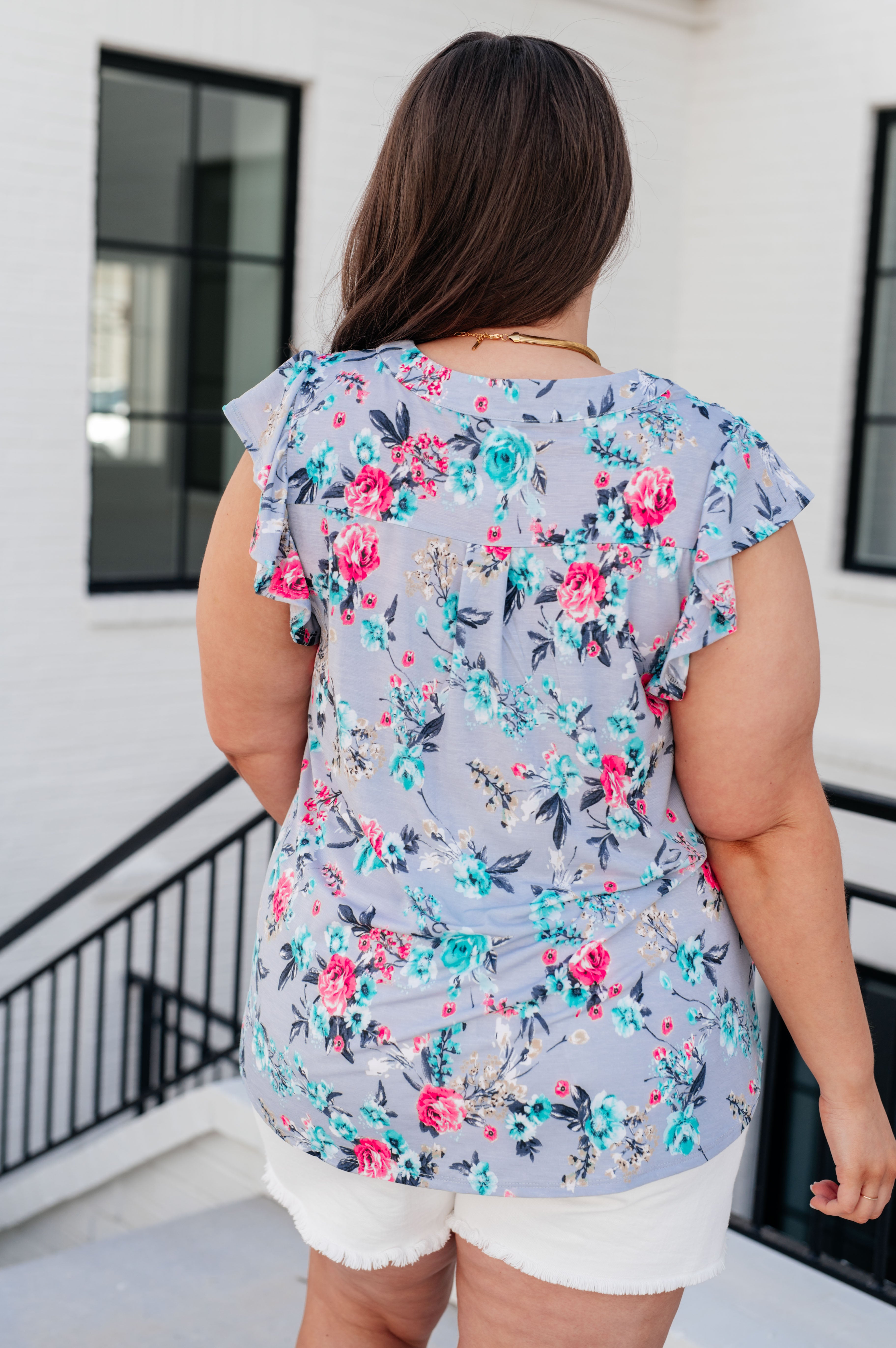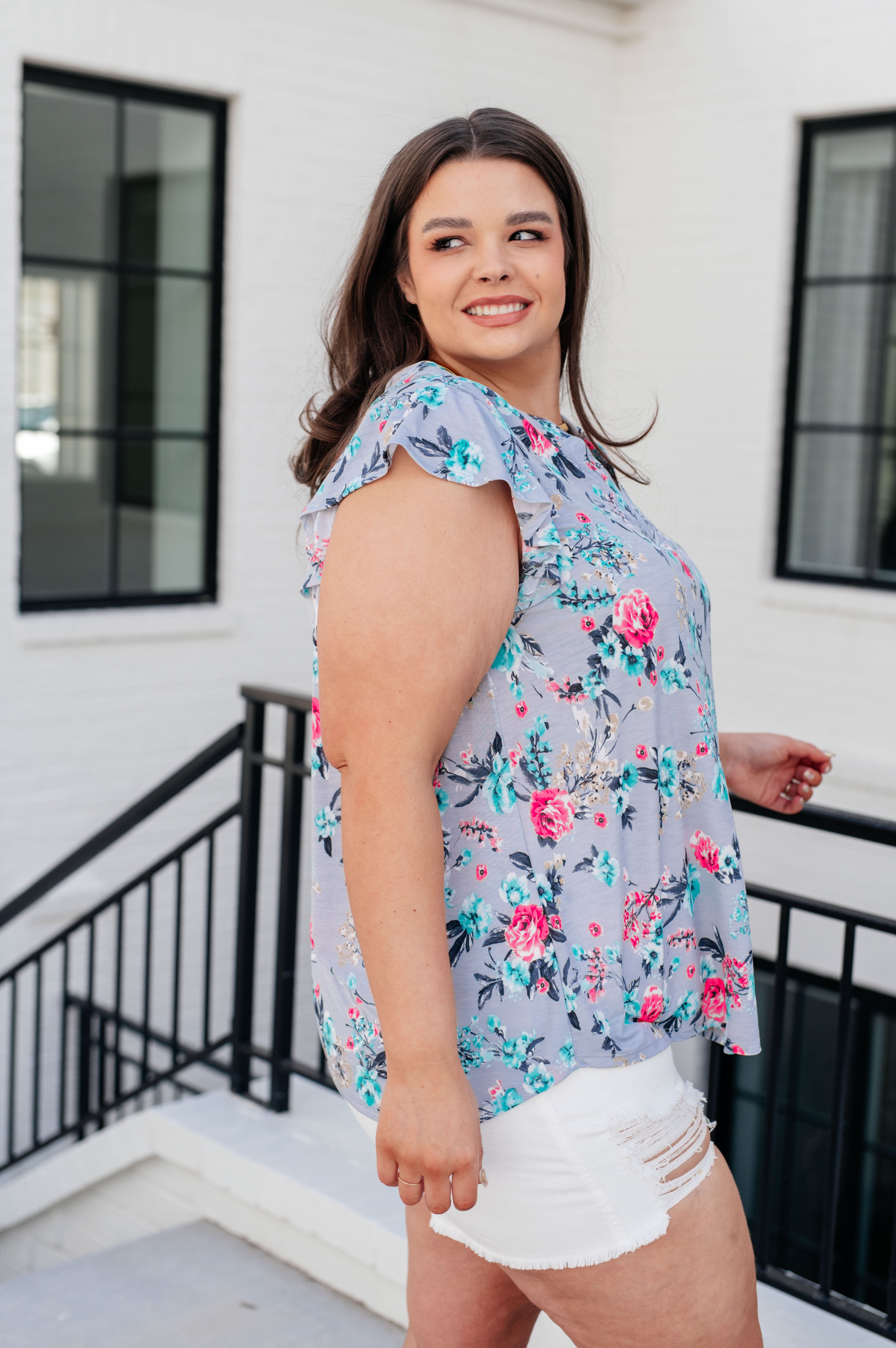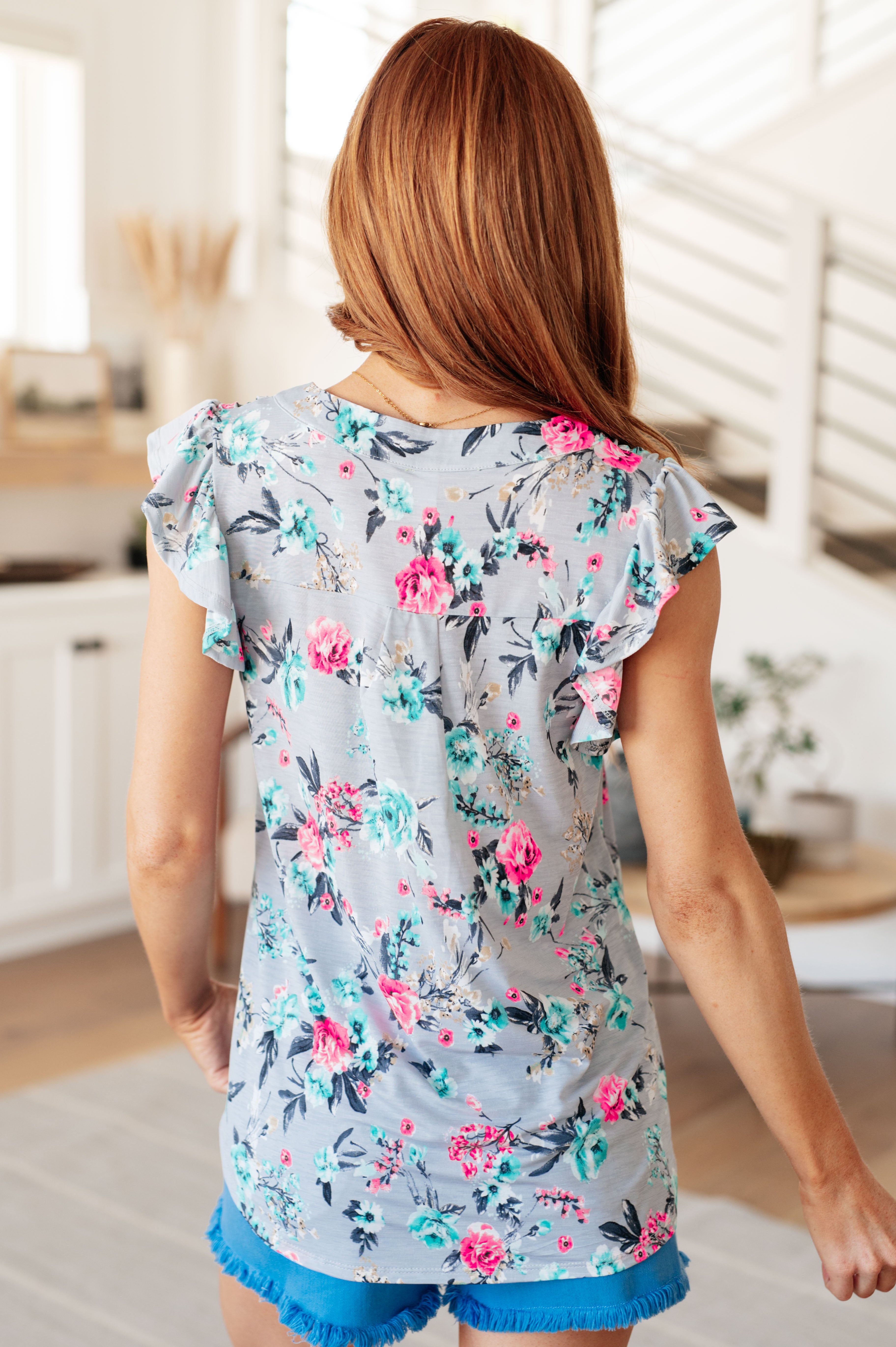 Lizzy Flutter Sleeve Top in Grey and Mint Floral