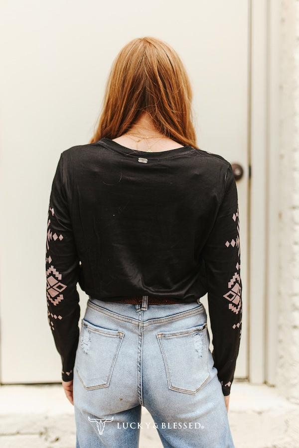 Black Aztec Horseshoe Long Sleeve Top