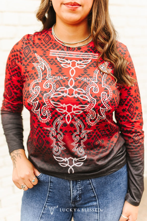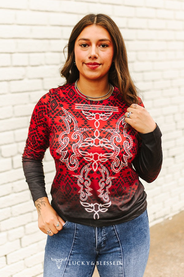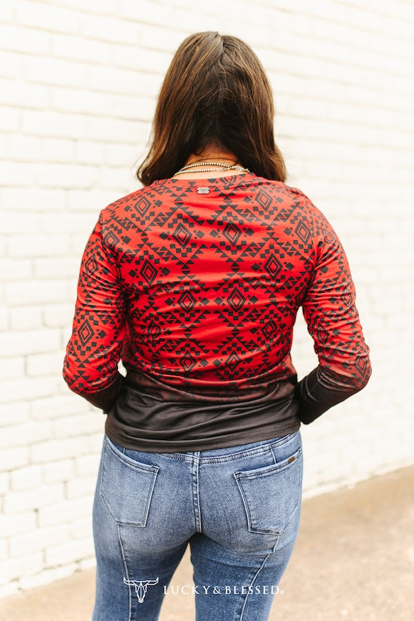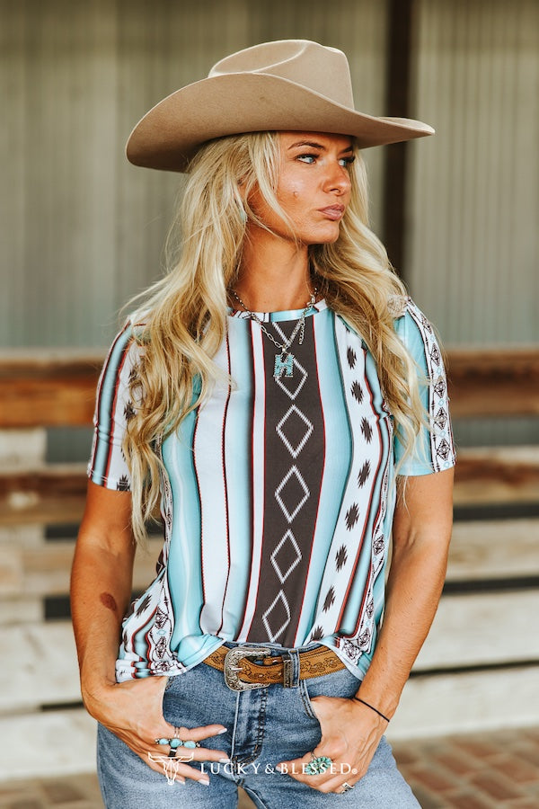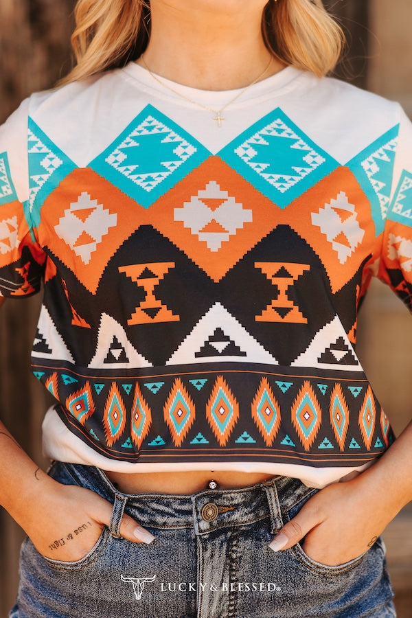 Ivory Orange Turquoise Aztec Printed Short Sleeve Top