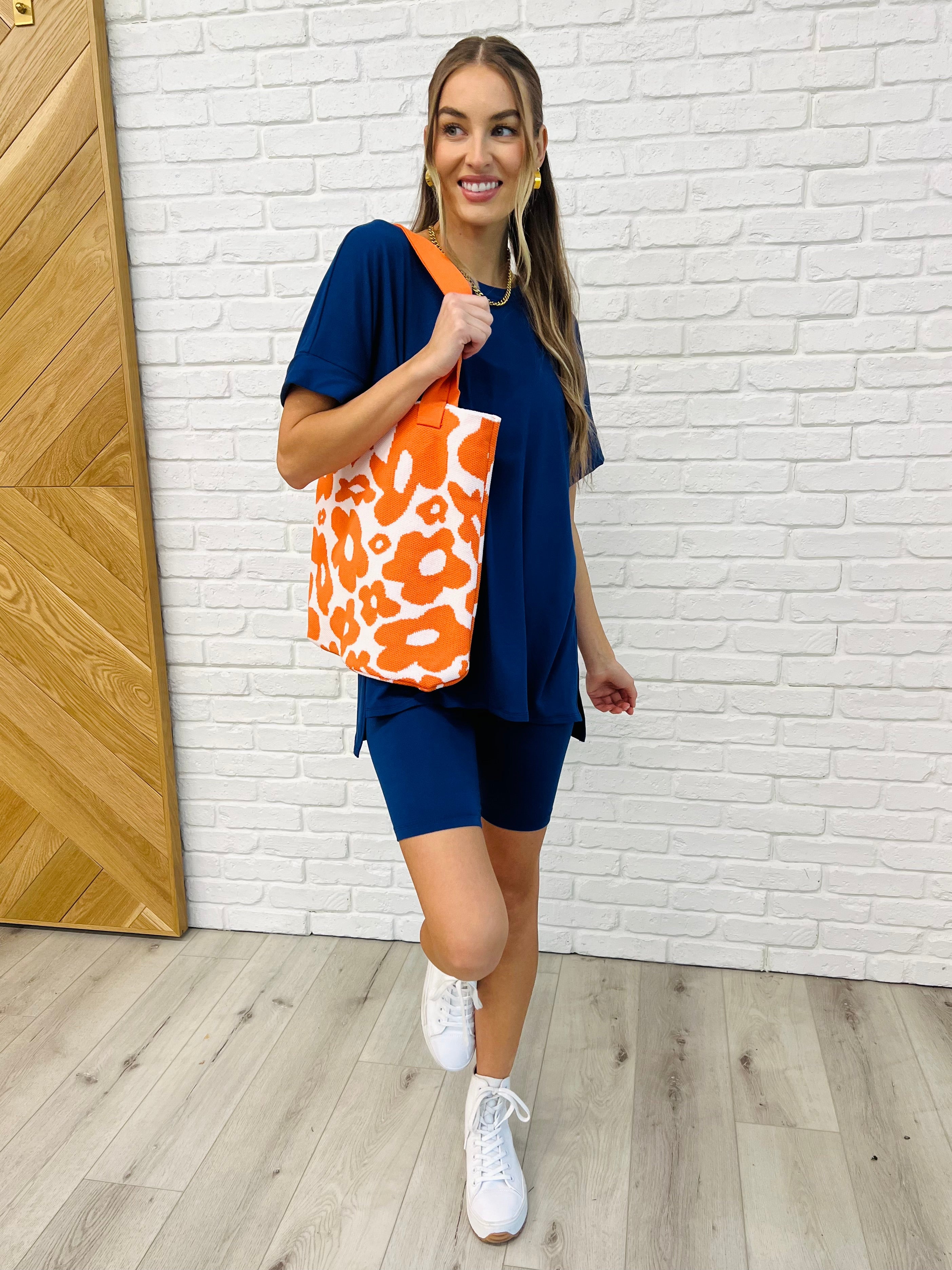 Comfy Cruising Top and Biker Shorts Set in Lt Navy