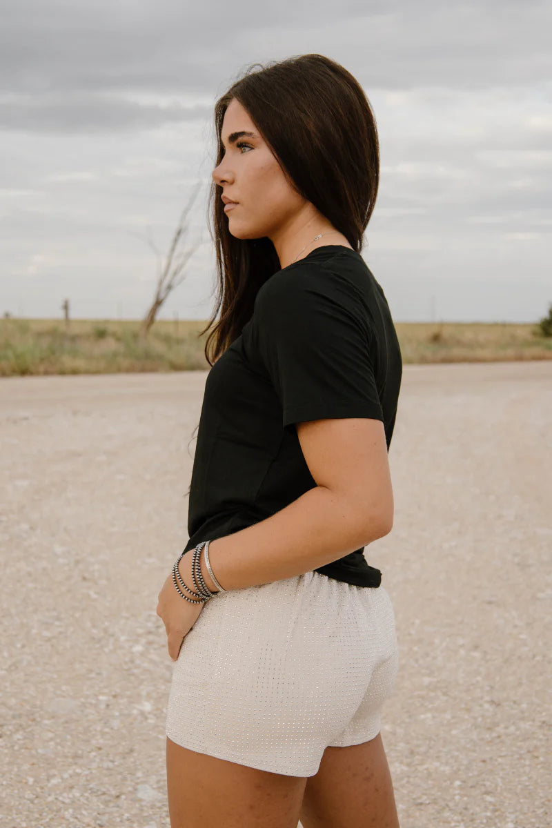 Sparkle and shine in our Cream Jitterbug Shorts! Made with soft velvet fabric, these shorts feature a comfortable elastic waistline and convenient front pockets. Plus, the sparkling rhinestones add a touch of glamour to any outfit. Perfect for dancing the night away!