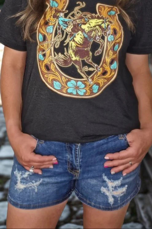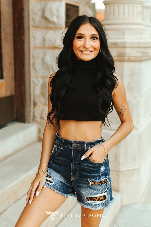Sunset Stroll Distressed Hem Shorts in Washed Black