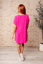 You'll surely turn heads in our I Wanna Be Like You Dress in Fuchsia! Made from crinkle woven fabric, it features a deep V-neckline and dolman sleeves for a playful, carefree look. Perfect for any occasion, this dress will have you feeling confident and stylish and the envy of all your peers!