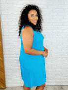 The Power I Hold V-Neck Ribbed Knit Dress in Aqua Glow