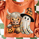 Faux Embroidery Cute fall highland cow ghost Top (Multiple Options)