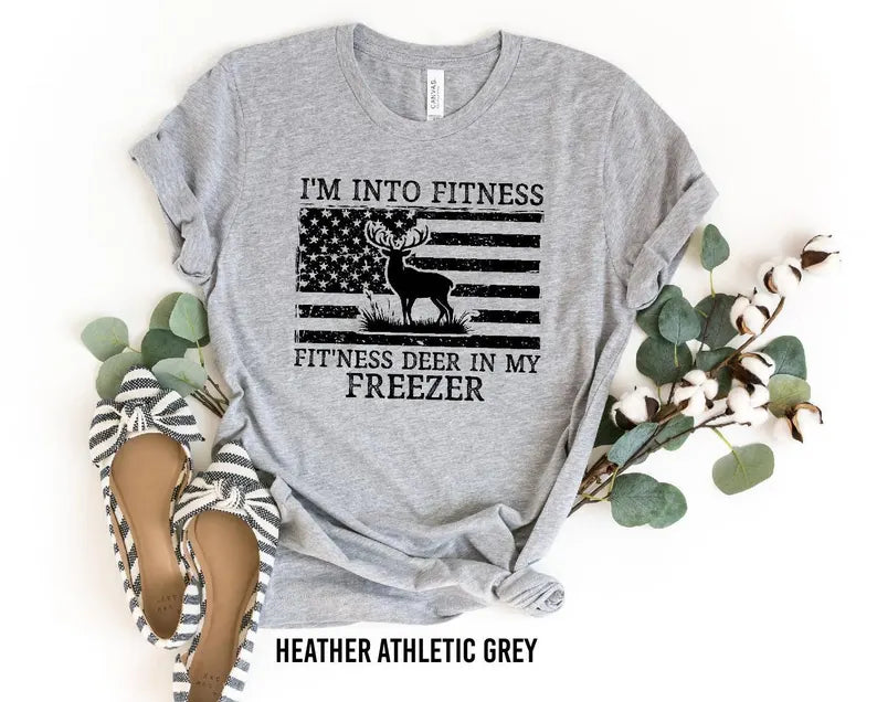 If you know, you know 😉— this one’s for the hunters with a sense of humor! Our “I’m Into Fitness… Fit’ness Deer in My Freezer” tee brings the laughs and the country pride. Whether you’re grilling up backstrap or just hanging out at deer camp, this comfy graphic tee keeps your style on point and your freezer full.