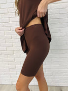 Comfy Cruising Top and Biker Shorts Set in Mahogany