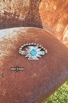 Western Soul with a bold edge. The Amarillo Aztec Bracelet features silver beads and a bold Aztec pendant with a turquoise bead in the middle. Perfect for the wild hearts and rodeo nights.