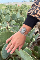 Bold, rustic, and full of Western soul. This Cosmic Concho Cuff features an engraved concho centerpiece with a pop of turquoise—perfect for adding cowgirl edge to any outfit. Lightweight but eye-catching, it’s made for rodeo nights and dusty trail days alike.