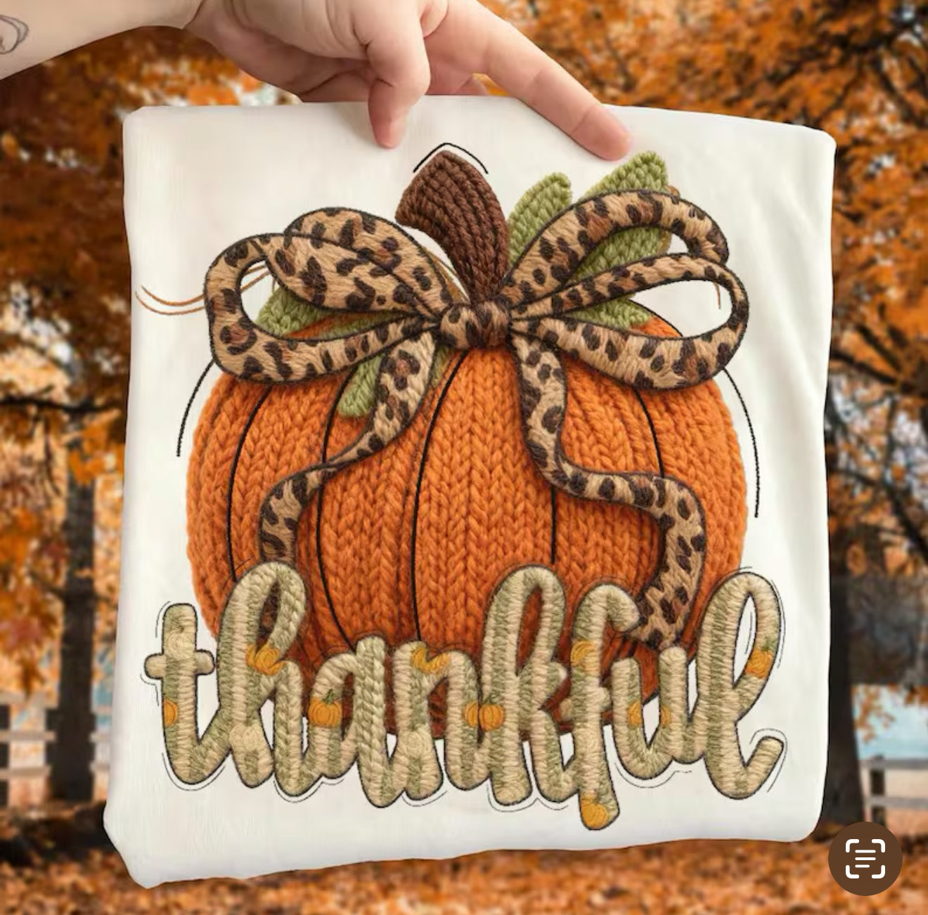 Fall in love with this cozy, country-chic top that’s all about gratitude and autumn vibes! Featuring a knit-textured pumpkin wrapped up in a leopard print bow and bold thankful lettering, this top is perfect for pumpkin patches, hayrides, or Thanksgiving dinner with the fam.