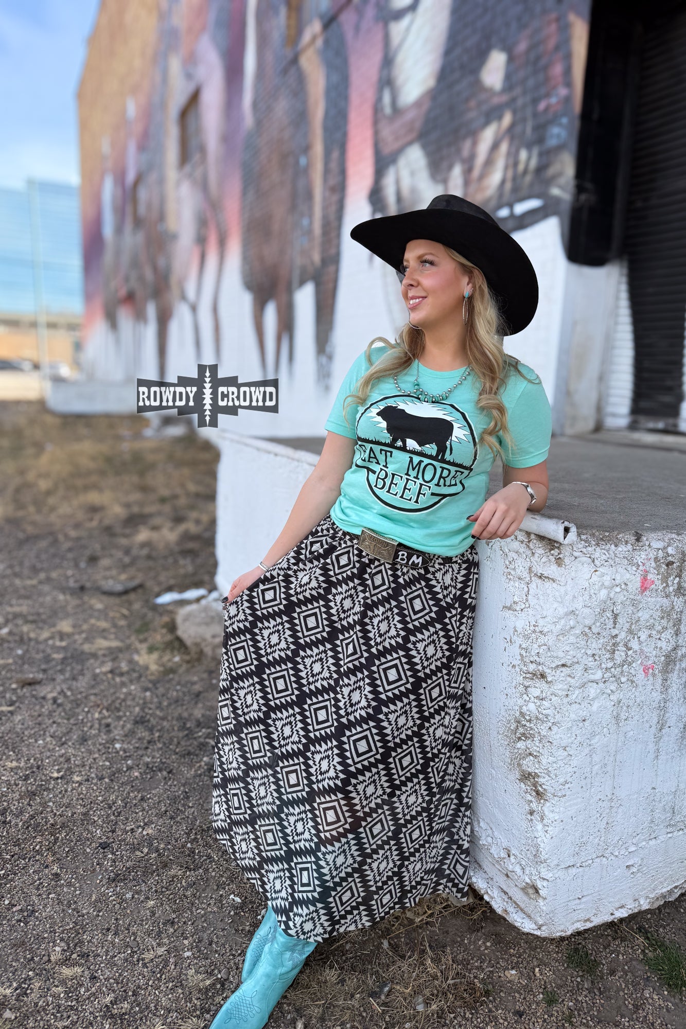 The Eat More Beef Tee brings the perfect mix of western humor and everyday comfort. Featuring a bold cattle graphic on a soft, easy-to-wear tee, it’s made for stock show days, small town nights, and anyone who knows beef is always the right answer. Throw it on with denim and boots for an effortless, laid-back Rowdy look.
