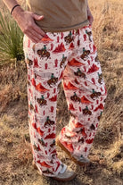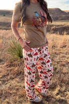 Experience the wild side in our Golden Rodeo Pants—wide-leg comfort meets untamed spirit. Crafted from our signature jogger material you already love, these pants feature a stunning desert scene complete with bucking broncs. Perfect for making a bold statement whether you're hitting the town or just living your best rodeo dreams. Comfort and attitude, all in one pair.
