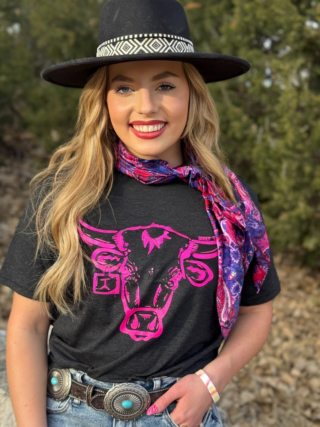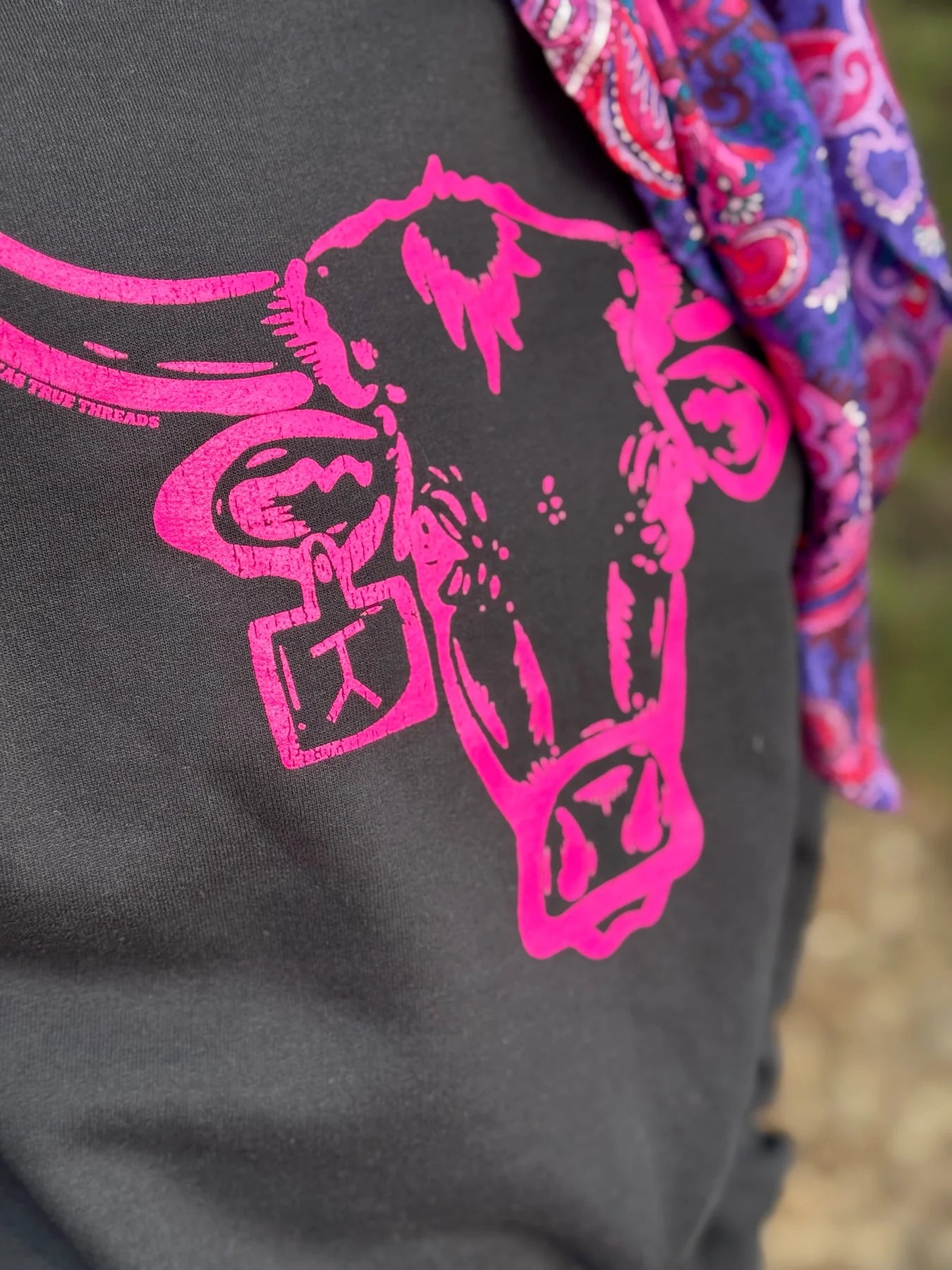 Saddle up for some serious style with this eye-catching steer head design blazing in bold neon pink! Perfect for anyone who loves western vibes with a fun, modern twist, this classic symbol gets a playful makeover that's anything but ordinary. Whether you're a rodeo enthusiast or just dig that cowboy aesthetic, this piece brings personality and pizzazz to your wardrobe. It's the kind of design that says you don't take yourself too seriously—but you definitely take your fashion seriously!