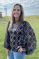 Elevate your style with The Way It Is Top, featuring a dynamic black and white Aztec pattern that adds bold, graphic appeal. The bubble sleeve design offers a trendy silhouette that balances volume with sophistication, perfect for making a statement anywhere. Lightweight and comfortable, this top effortlessly combines eye-catching style with easy wearability to enhance your everyday wardrobe.