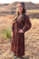 Saddle up for style with the Western Dreams Dress—a long sleeve mesh beauty that brings cowgirl chic to life. This stunner features rich brown leather tooled detailing accented with vibrant turquoise pops that'll have heads turning. The flattering V-neckline frames your silhouette perfectly, while the built-in slip keeps you covered and confident all day long. Whether you're hitting the dance floor or making a statement at your next event, this dress blends western flair with modern elegance. It's the perfect piece for anyone who loves bold patterns and timeless western style with a contemporary twist.